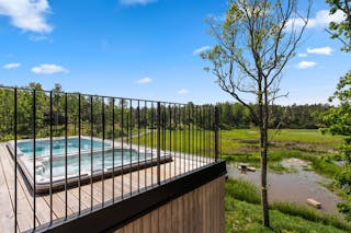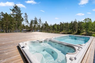 Smarta hem-funktioner med Control 4 ger dig full kontroll över belysning, audiovisuella system och annan teknik genom några enkla knapptryckningar. Självklart är bostaden ansluten till fiber och maskinhallen är inkopplad med nätverk. Det gedigna smidesstaketet inramar tomten och swimspa från Hydropool bjuder in till avkoppling året om.