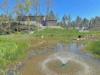 Andningsluften hålls frisk och ren med ett komplett FTX-ventilationssystem, inkluderande AC på frikyla för de varma sommarveckorna. Bergvärme säkerställer energieffektiv uppvärmning och en låg driftskostnad. Solpanelerna från Sunroofs – 98 unikt designade paneler – ser till att både miljön och din plånbok håller sig grön.