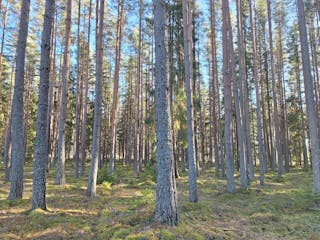 Trädslagsfördelningen är 52 % tall, 31% gran, 13 % björk och 3 % asp.