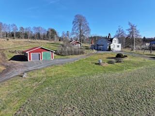 På gårdscentrum finns en ladugård, ett garage, en vedbod och en timrad äldre byggnad.
