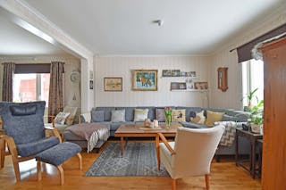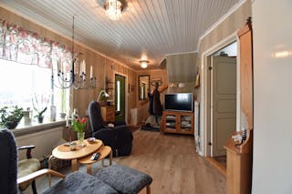 Huset är byggt 1926 och tillbyggt under 1960-talet, huset har fasad med träpanel, plåttak och treglasfönster eller tvåglasisolerfönster. Enligt fastighetsutdraget uppgår boarean till 90 kvm och enligt uppskattning till ca 150 kvm. Biarea uppgår till 30 kvm enligt fastighetsutdraget.