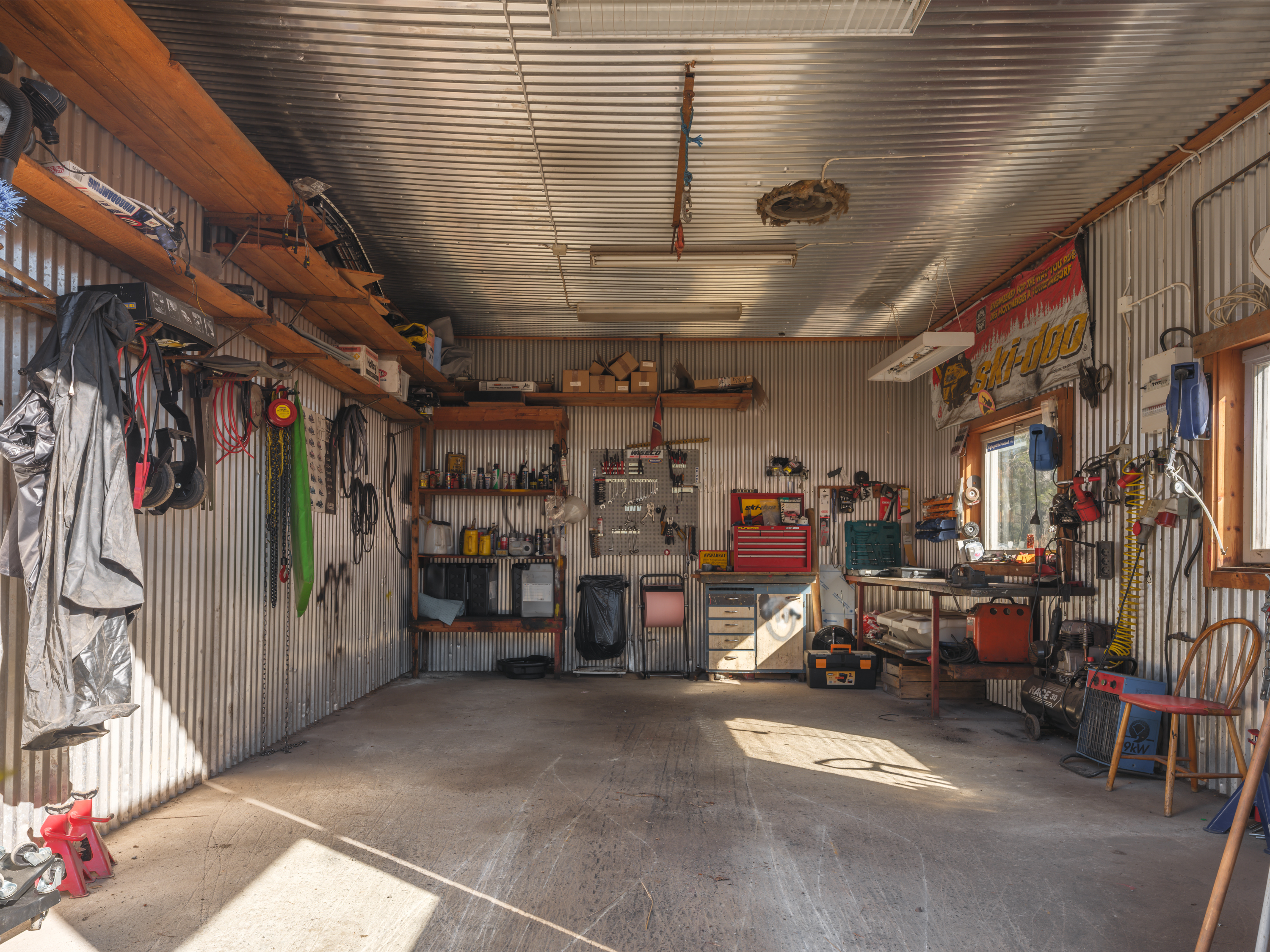Maskinhall med tre rymliga platser som erbjuder goda möjligheter för förvaring av maskiner, fordon eller utrustning. I anslutning till maskinhallen finns även en maskinverkstad om cirka 25 kvm. Verkstaden är isolerad men saknar fast värmekälla.