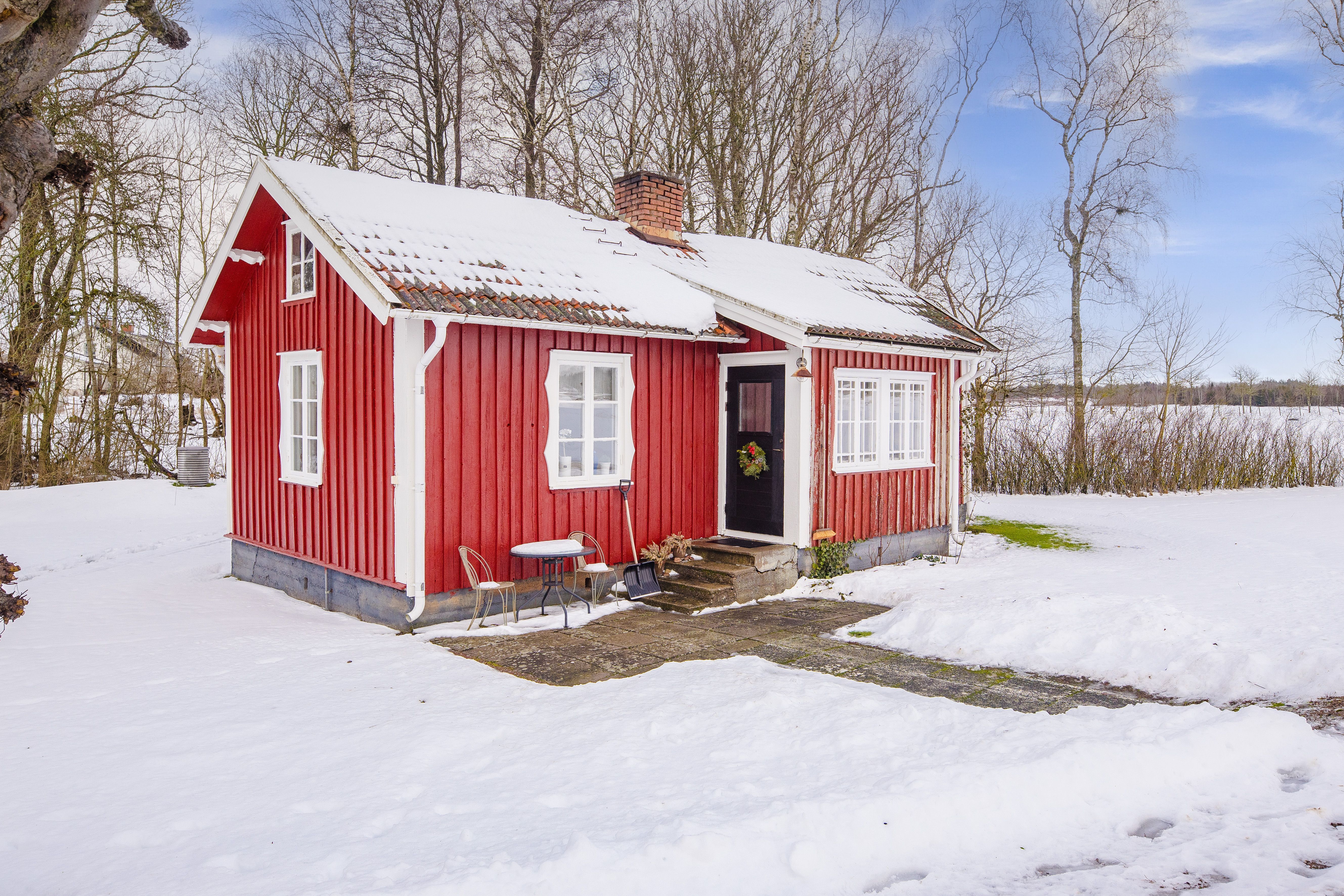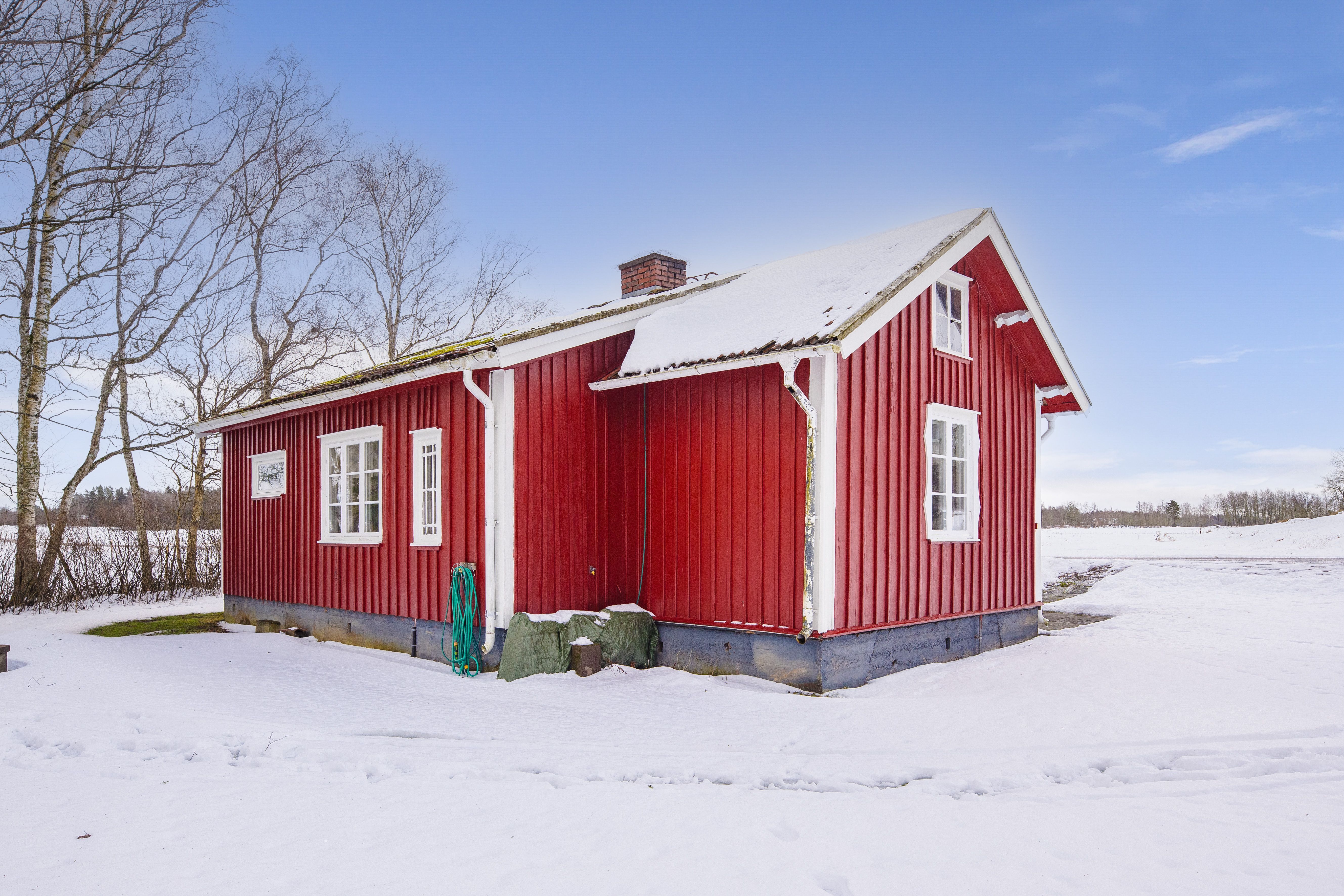1-planshus uppfört på torpargrund med timmerstomme och fasad av stående träpanel. Stugan har tvåglasfönster och på taket ligger lertegel.