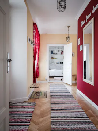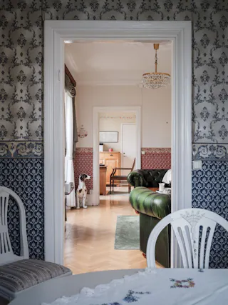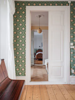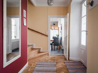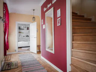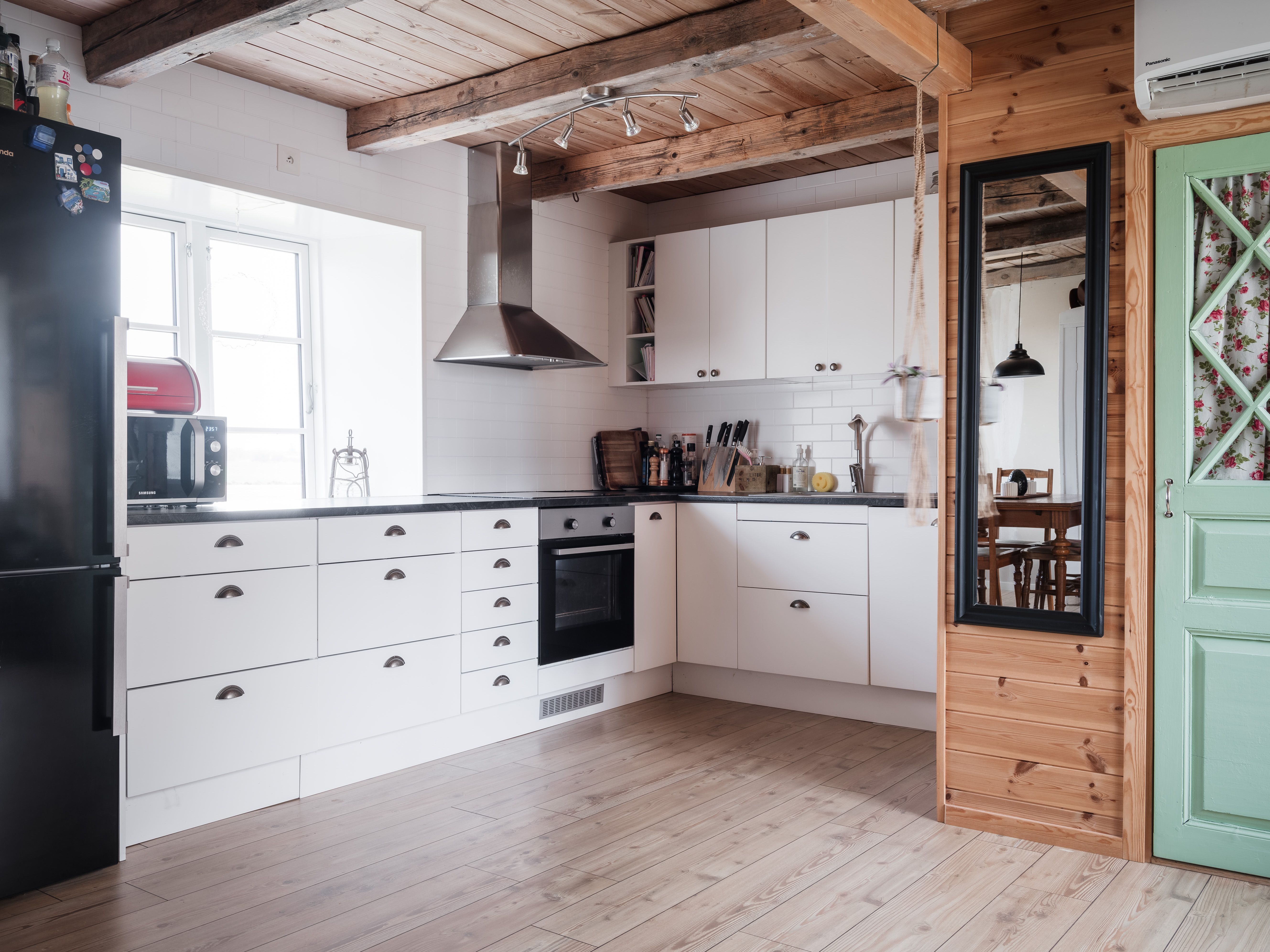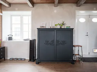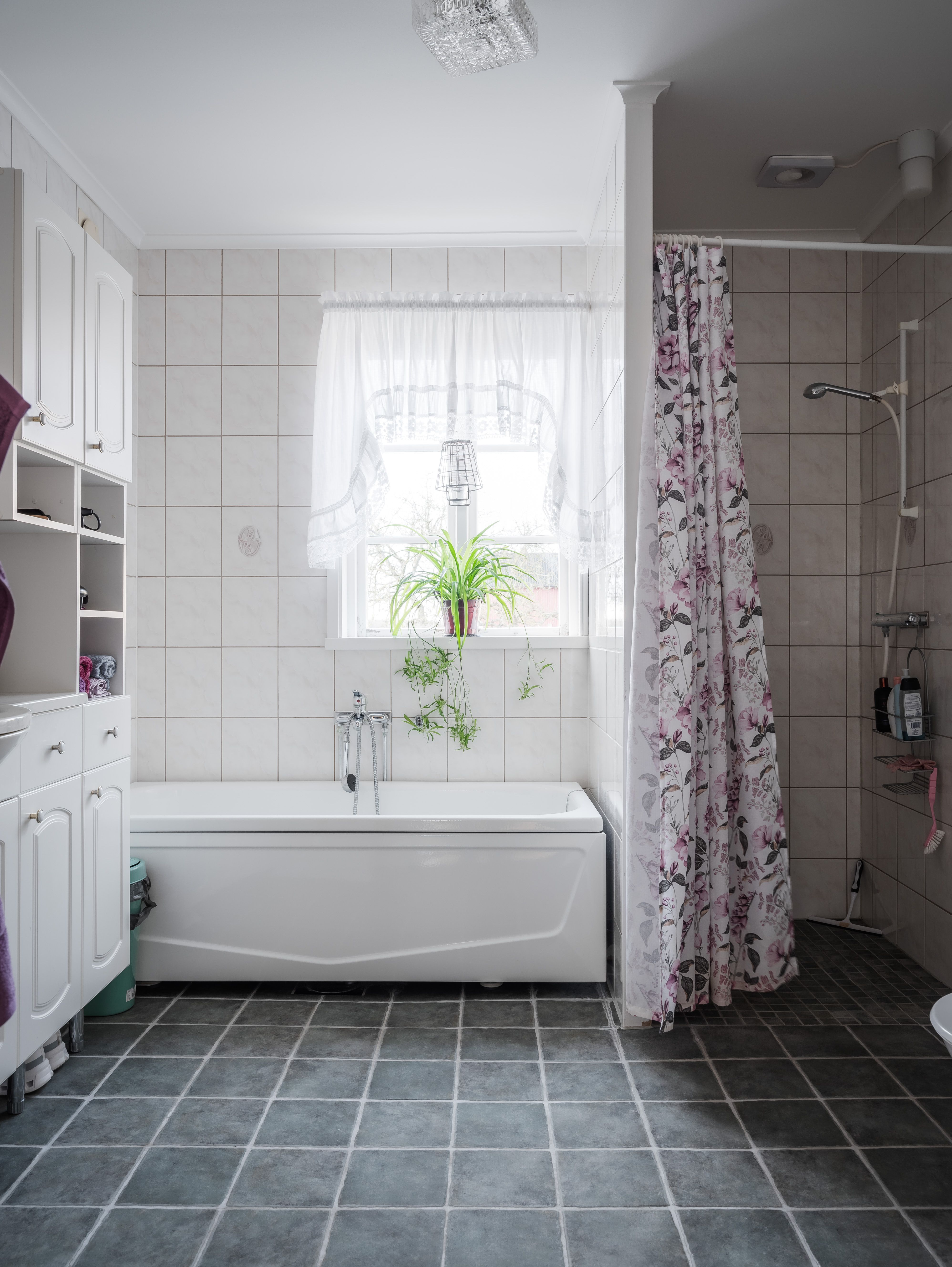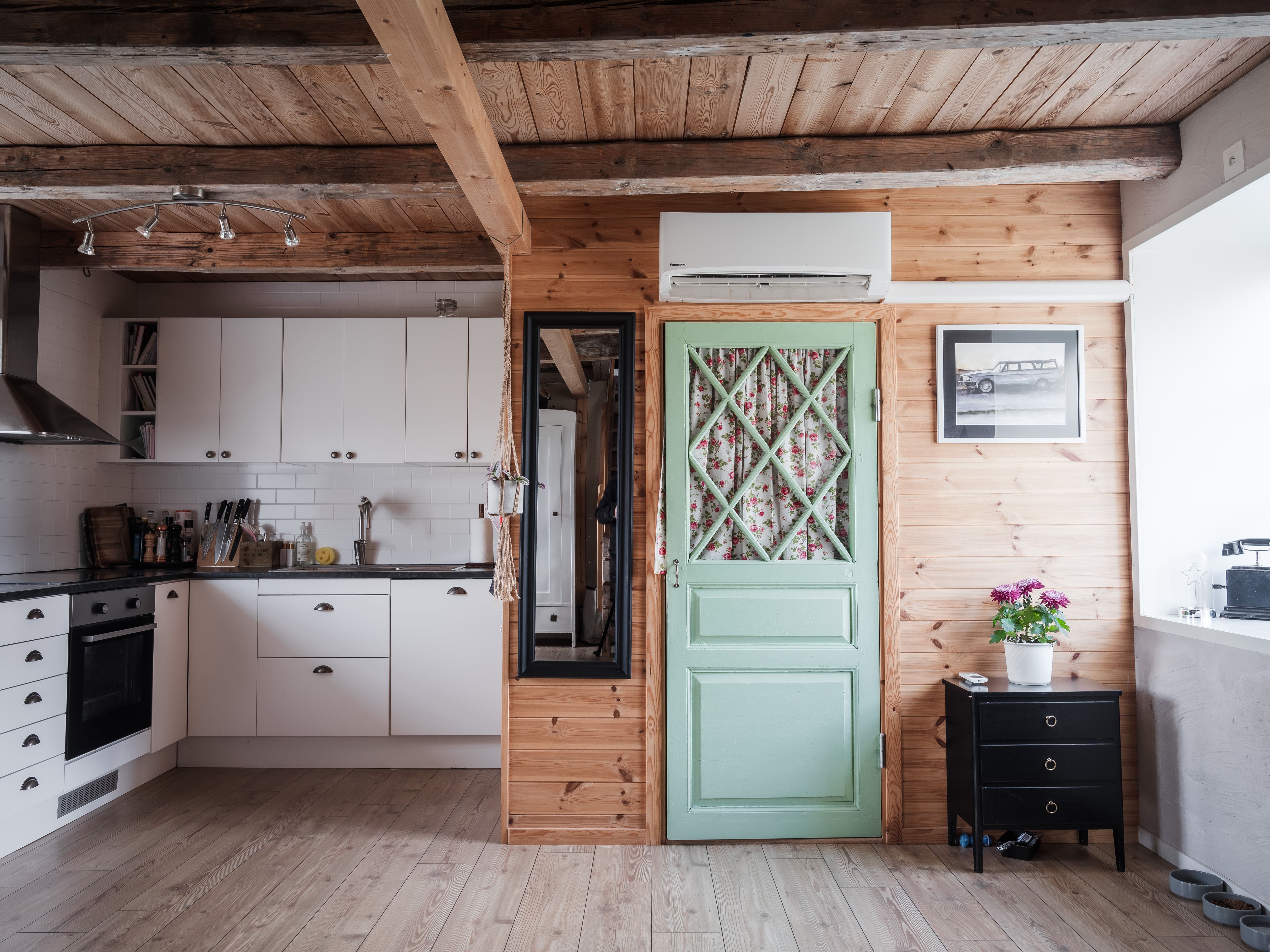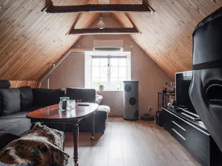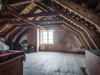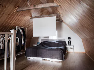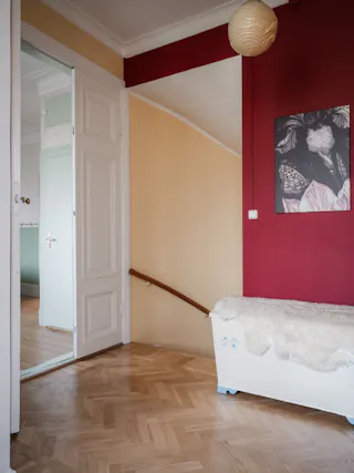 Från hallen når man via trappa den rymliga vinden ovanför.