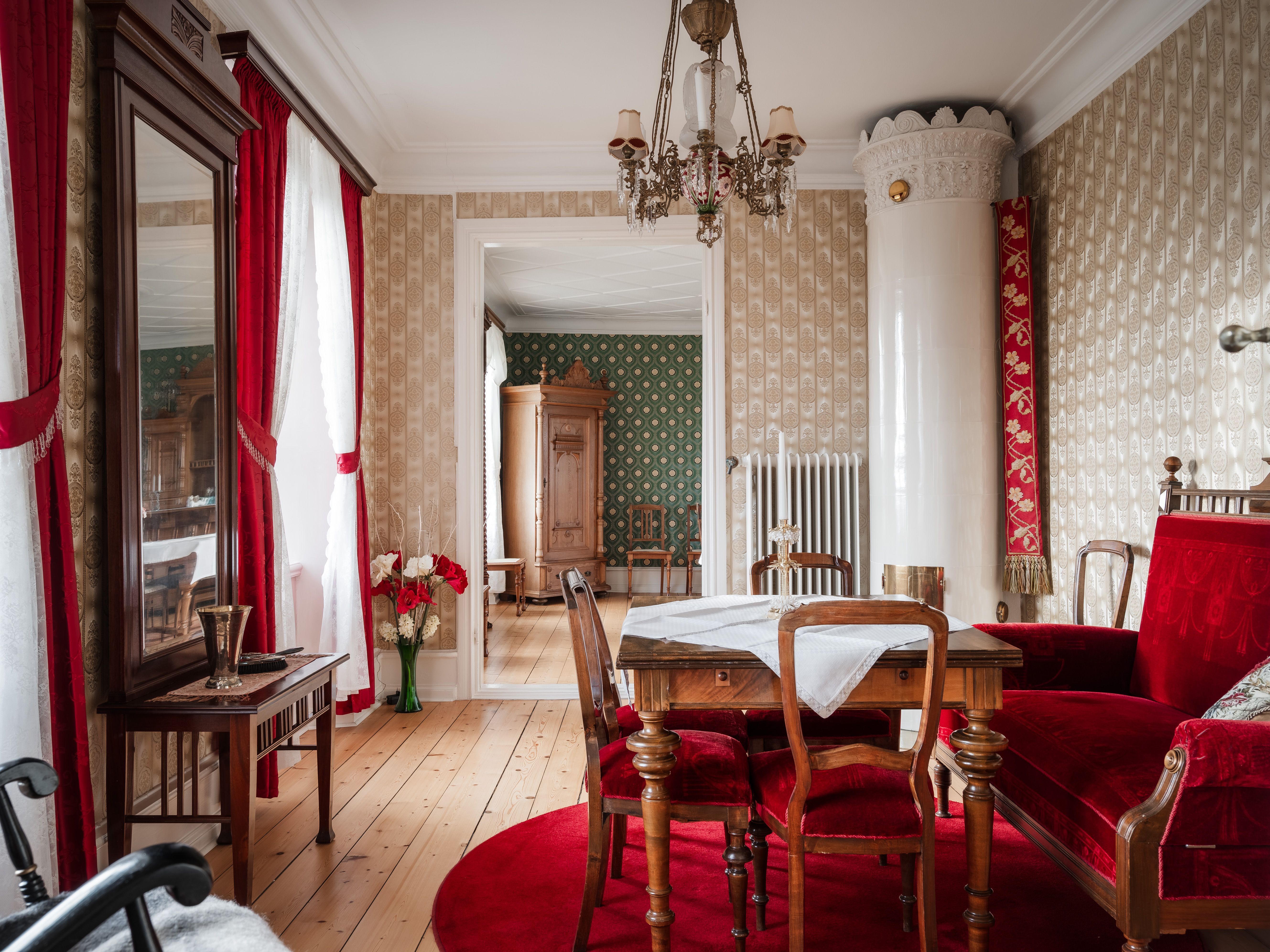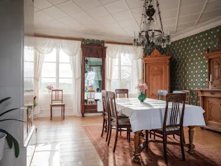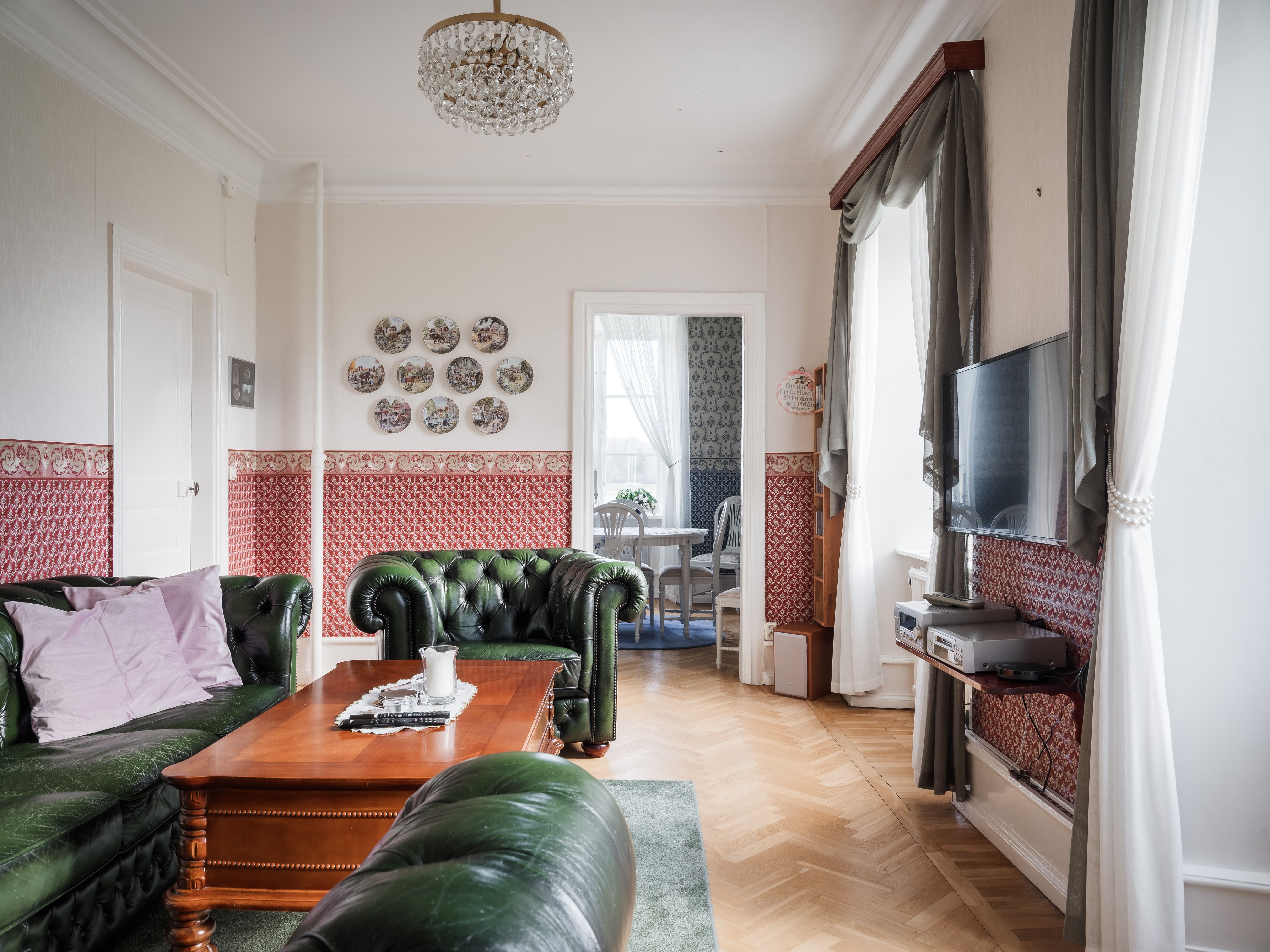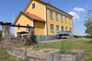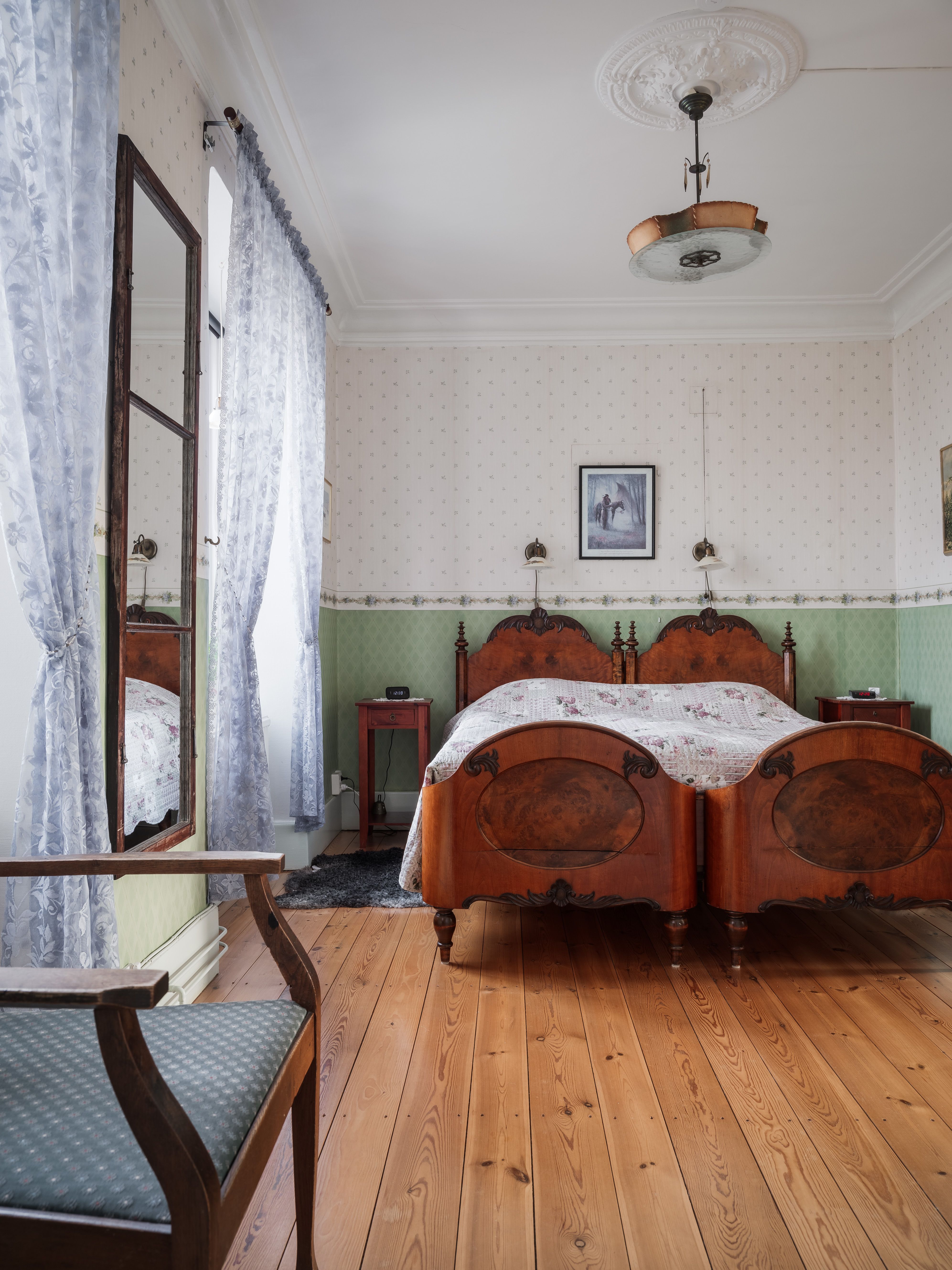 Vackert stenhus med 2 hela bostadsplan i full takhöjd samt källare och vindsutrymmen därtill. Sannolikt uppfört omkring år 1850. Boarea om 220 m² enligt försäkringsbrev. Huset är mycket välhållet och det finns en genomgående bra känsla och många fina detaljer såsom djupa nischer, pardörrar och kakelugnar. Tak av tegel samt plåt (-97) över tillbyggnaden samt kopplade 2-glasfönster. Vattenburen uppvärmning via bergvärmepump från Nibe (2019). I reserv finns den tidigare flispannan. Eget vatten via borrad brunn. Eget avlopp i form av 3-kammarbrunn med infiltration. Anläggning med beslutsår 2016 och utfört år 2017, godkänt för 3 hushåll. Fastigheten är fiberansluten med 2 abonnemang. Ett till mangård/flygel och ett till den tidigare magasinsbyggnaden.