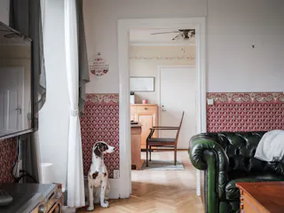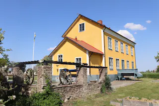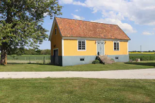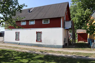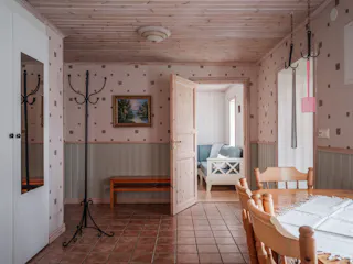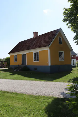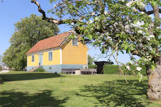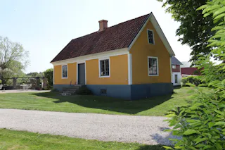Kalkstensbyggnad under tak av tegel. Kopplade 2-glasfönster. Boarea om 90 m² enligt försäkringsbrev. Byggnad som ofta hyrts ut permanent sedan den renoverades omkring år 2020. Bottenplanet inrymmer kök med matplats samt duschrum med elgolvvärme. Våtrumsmatta, WC, tvättställ i kommod, handdukstork samt toppmatad tvättmaskin. Övervåning med kombinerat sovrum och vardagsrum. Luft-luft värmepump på båda våningsplanen.