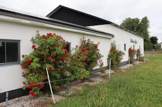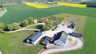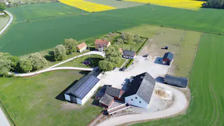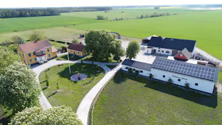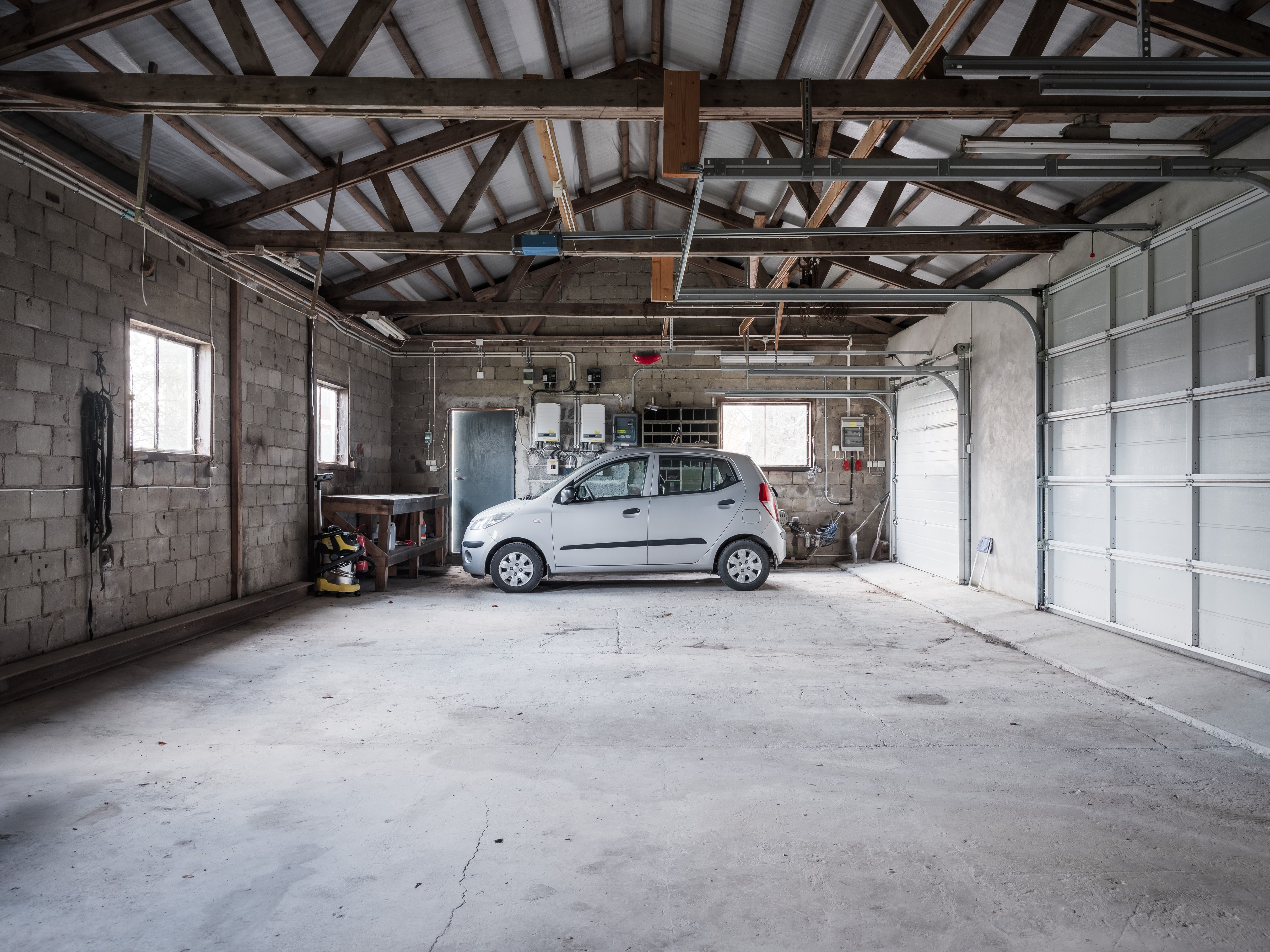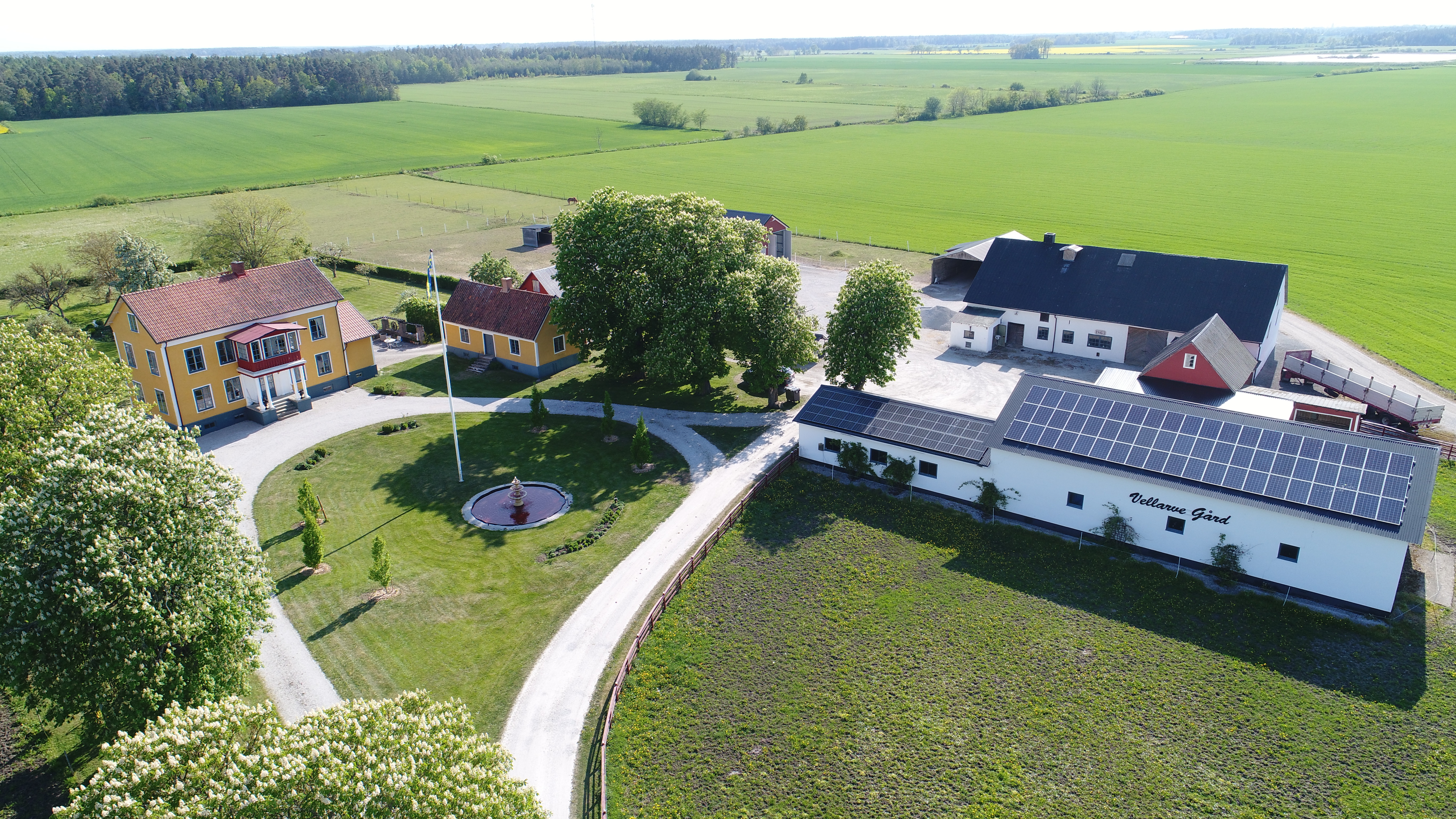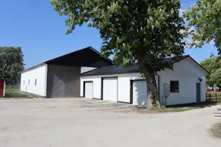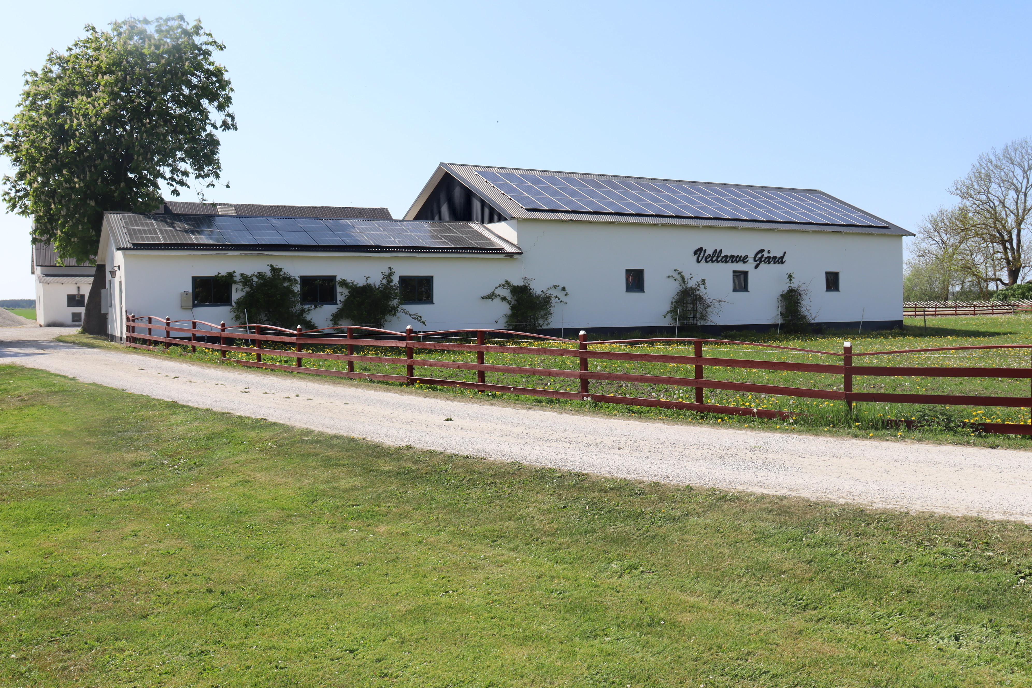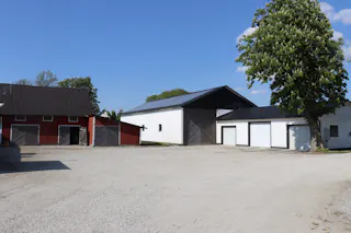 Garage för 3 bilar vidbyggt med maskinhallen. Elektriska portar. Solceller på taket även här.