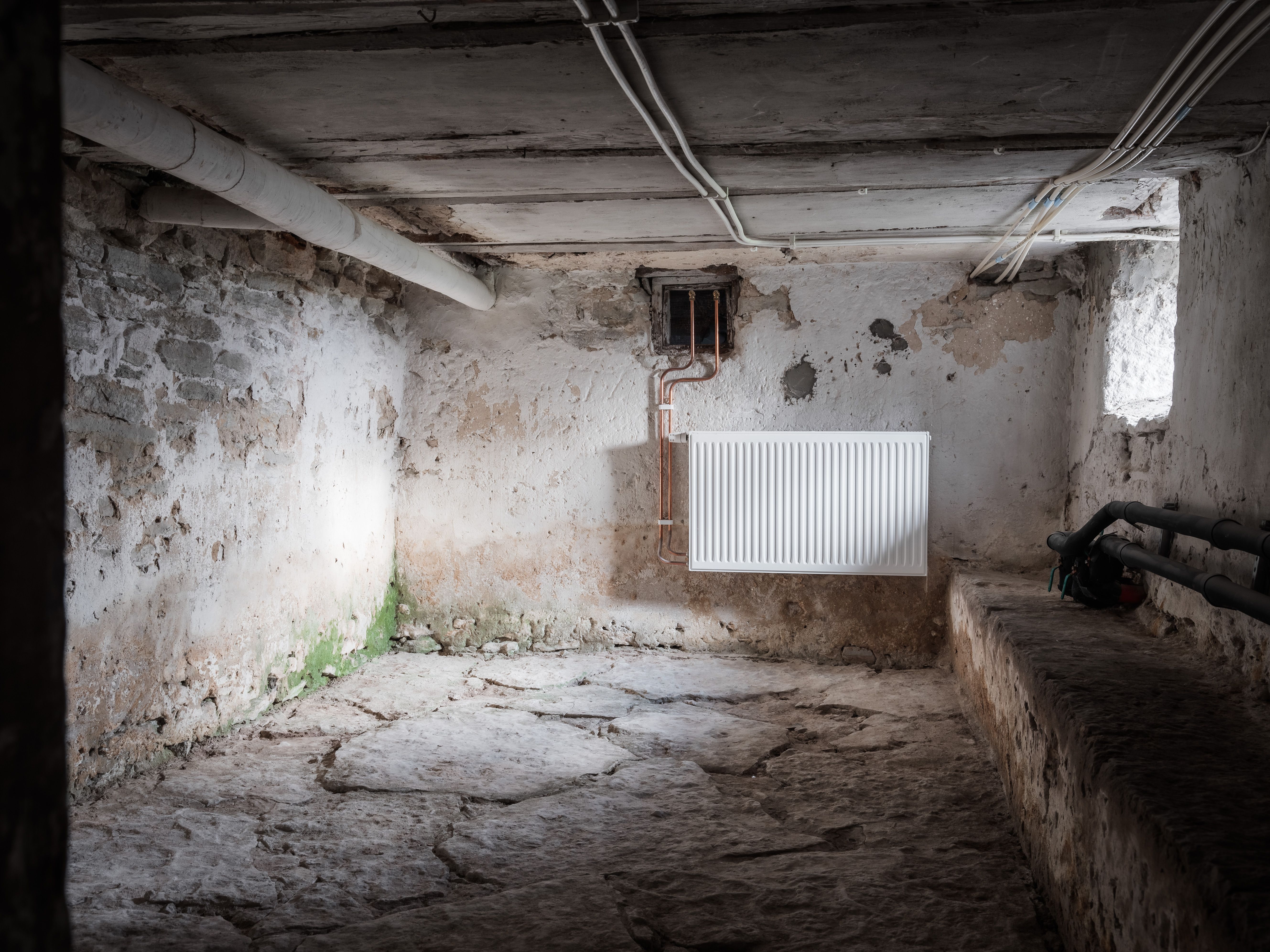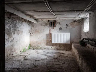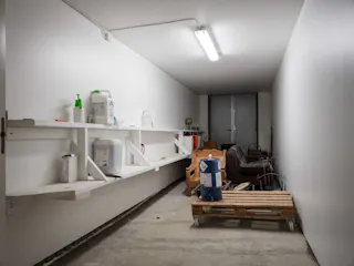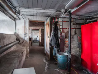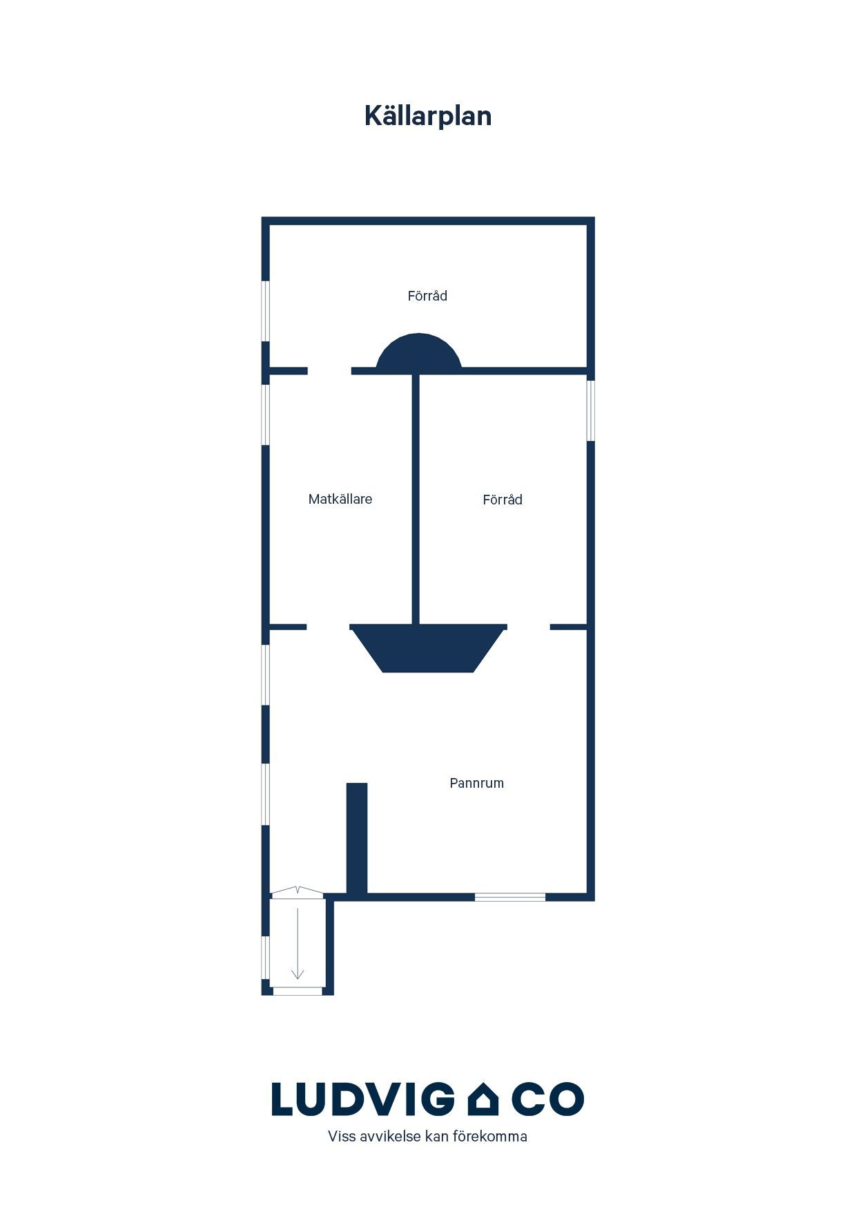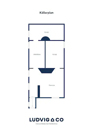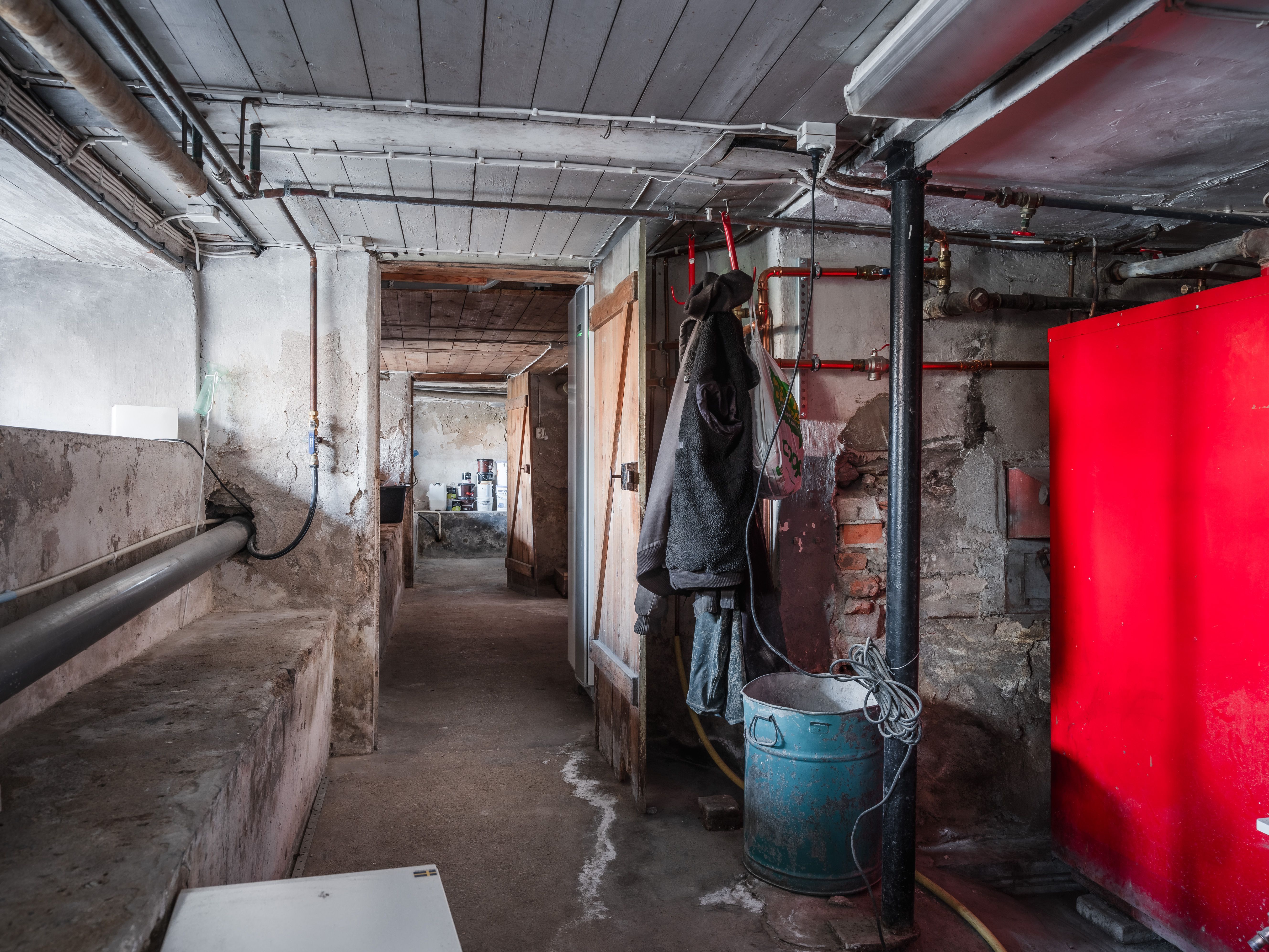 Källare med pannrum och gott om klassiska källarutrymmen/förråd. Pannrum med flispanna från år 2000. Hydrofor och avhärdare till vattnet. Nibe elpanna till bergvärmeanläggningen. Överlag omkring 1,85 m i takhöjd med undantag för förrådet med kalkstensflis på golvet, där är det omkring 1,65 m.