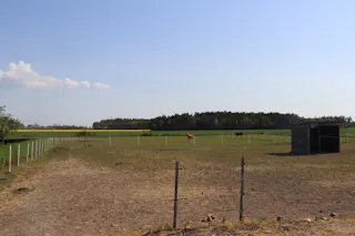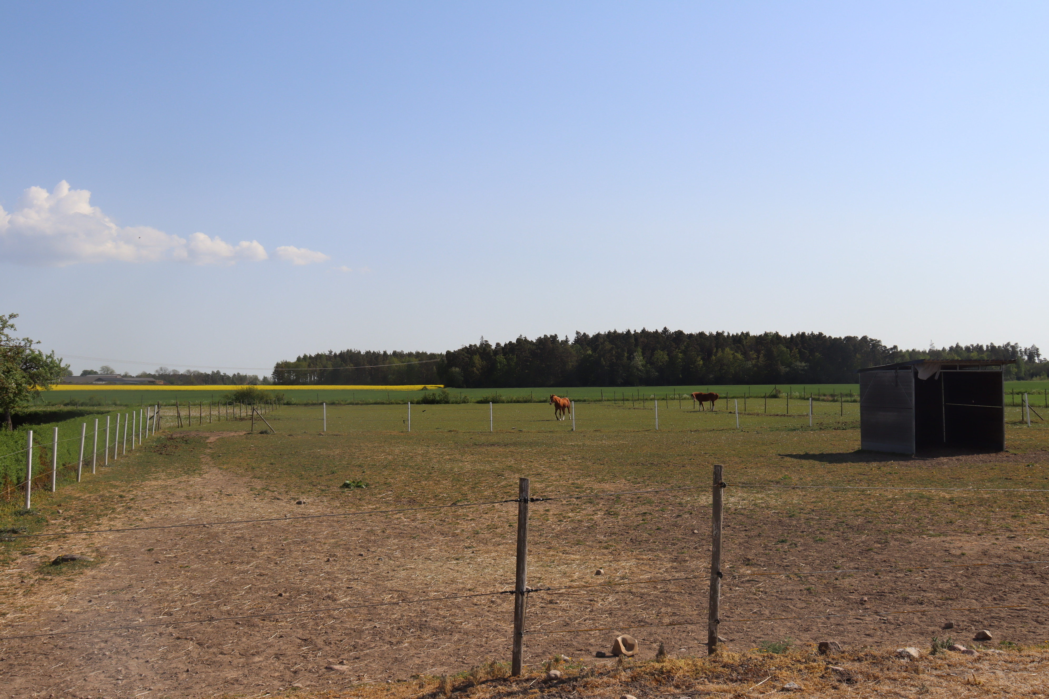 Omkring 2 ha betesmark/åker vid gårdscentrum. Har främst nyttjats till gårdens hästar.