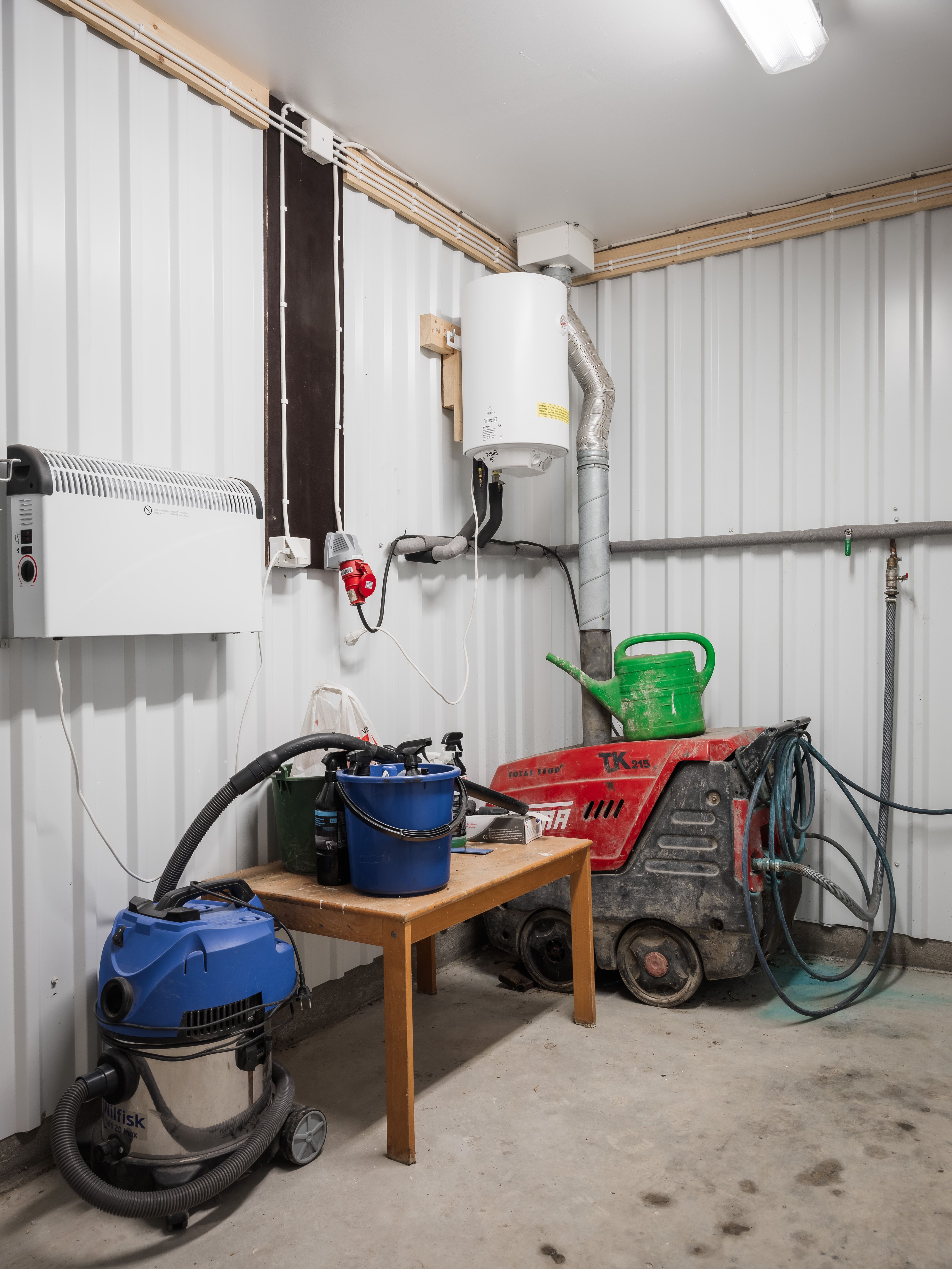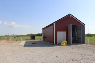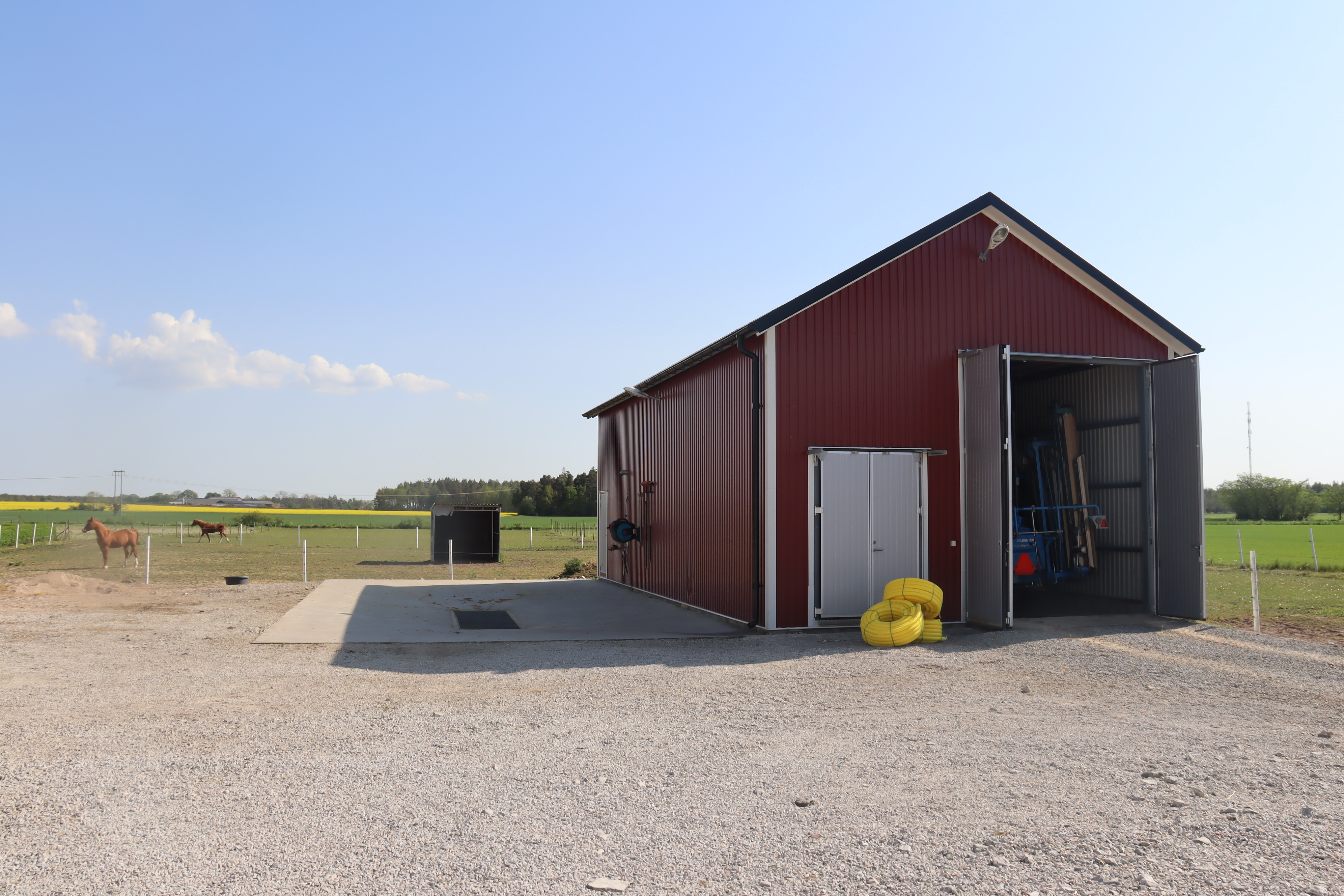 Byggnad uppförd år 2017. Stålstomme samt fasad av plåt. Byggnadsyta om 98 m² enligt försäkringsbrev. Isolerat apparatrum med varmvattenberedare, tvättutrustningen till byggnaden ingår ej. Depå tankpåfyllning oljeväxtspruta. Kemförråd.