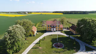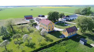Gårdsbebyggelse vackert belägen i utkanten av Roma åt Visbyhållet till. Pampig mangårdsbyggnad och därtill 3 olika boenden som kan generera goda sidointäkter. Här är det ordning och reda med såväl praktiska och väl underhållna ekonomibyggnader. Mark om 10,7 ha fördelat på ca 3 ha vid gårdscentrat och dryga 7 ha skog en liten bit från gården. Underbar trädgårdstomt och verkligen en unik plats att trivas på.