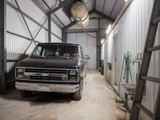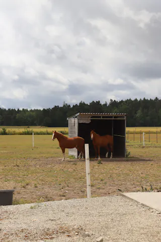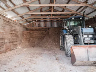 Enklare byggnad (tidigare plansilo) som främst använts som flisförråd. Vindskydd till hästarna intill.