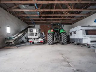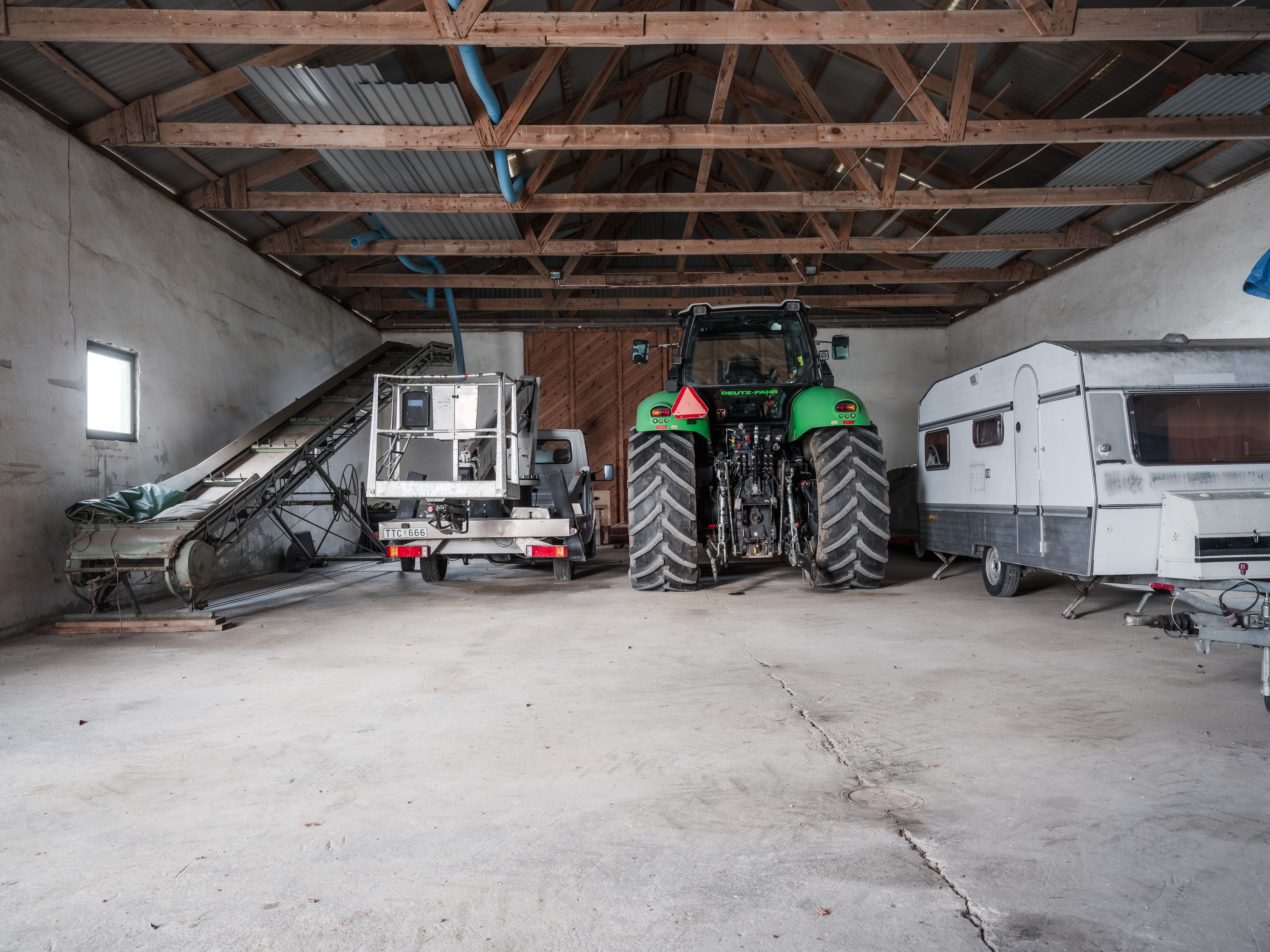 Maskinhall från år 1987. 12 x 21 m. Betonggolv och elanslutning. Solceller på taket sedan år 2019-2020. 38-39 kW vilket gör att gården är tämligen självförsörjande på el. Totalt 146 solpaneler. Byggnadsytan för maskinhall och garage är på 313 m² enligt försäkringsbrev.
