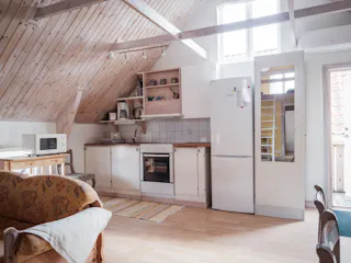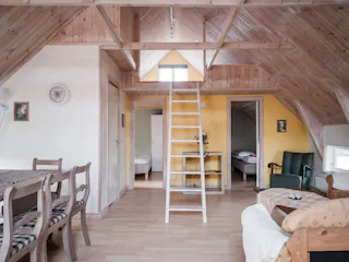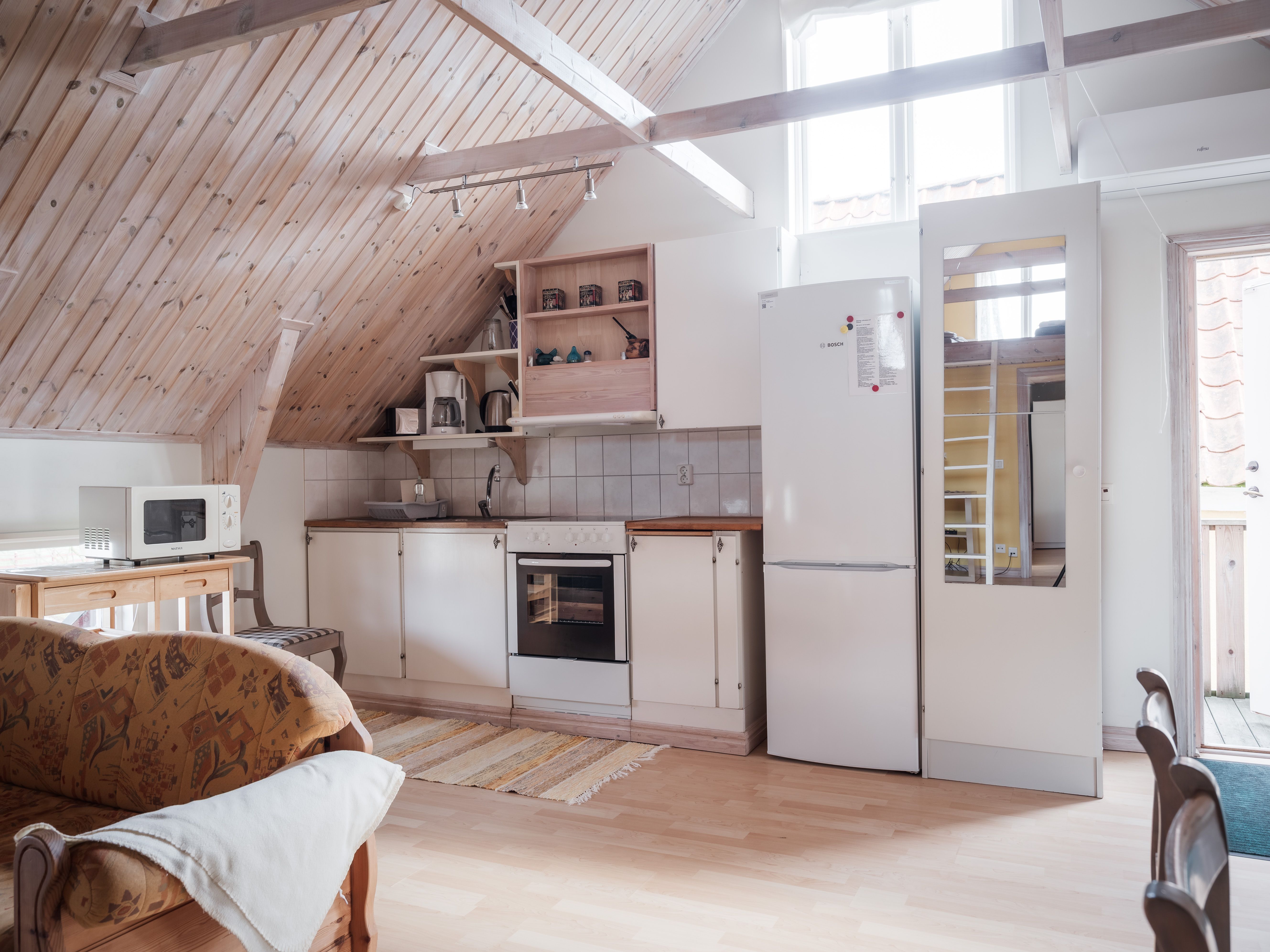 Lägenhet 2 öv om ca 60 m², direktverkande el samt luft-luft värmepump. Entré i kök/allrum. Kök med matplats. Utrustat med spis, fläkt och kombinerad kyl/frys. 2 sovrum samt ett loft med sovmöjligheter. Laminatgolv i samtliga rum. Duschrum med plastmatta. WC, tvättställ, dusch samt toppmatad tvättmaskin.