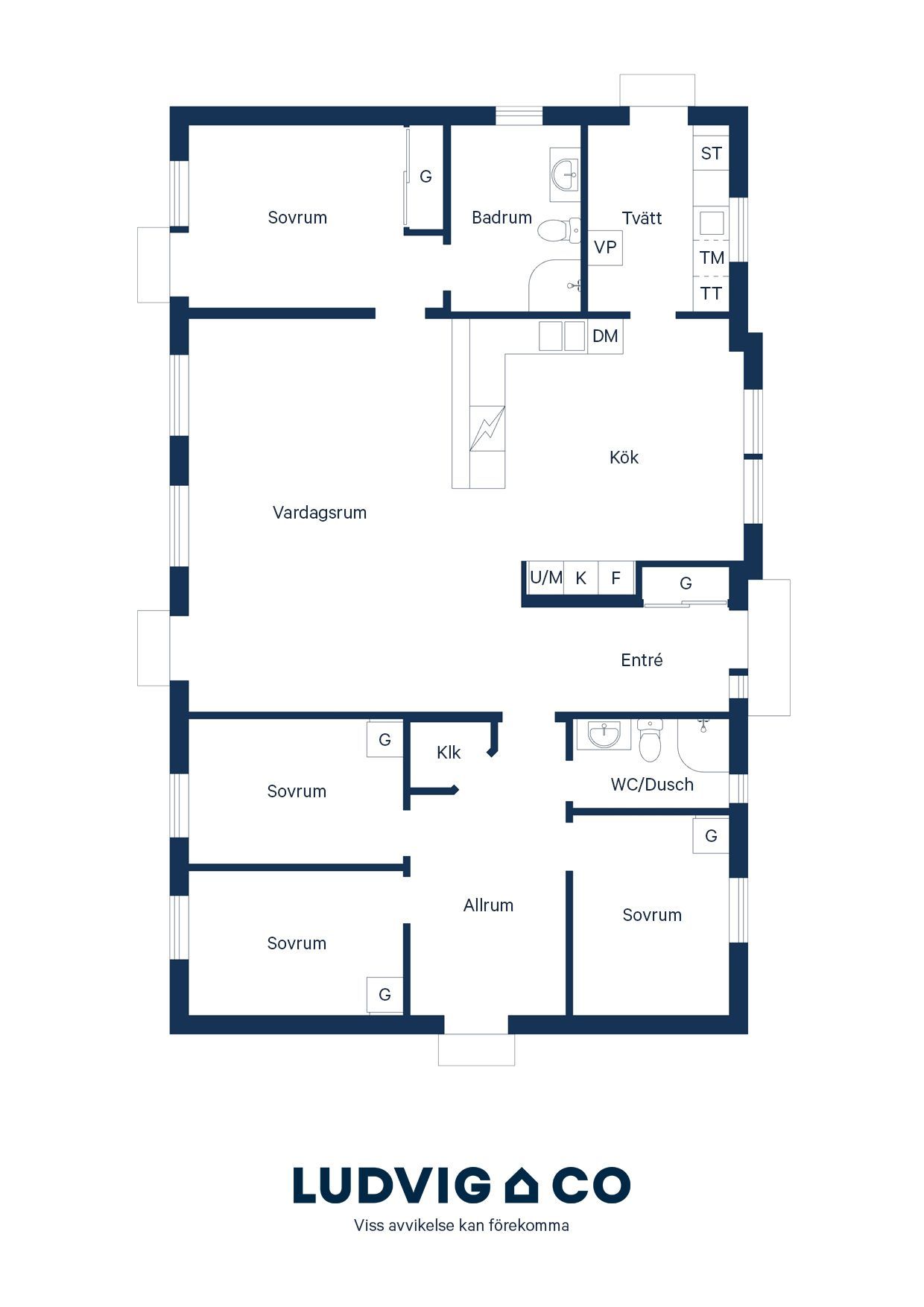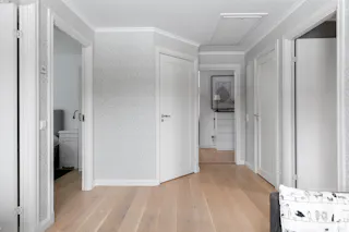 Den välplanerade planlösningen rymmer 4–5 sovrum, perfekt för den växande familjen. Master bedroom är smart avskilt med eget badrum, medan barnens del av huset erbjuder både badrum och ett mysigt allrum, en idealisk yta för lek och umgänge.