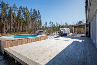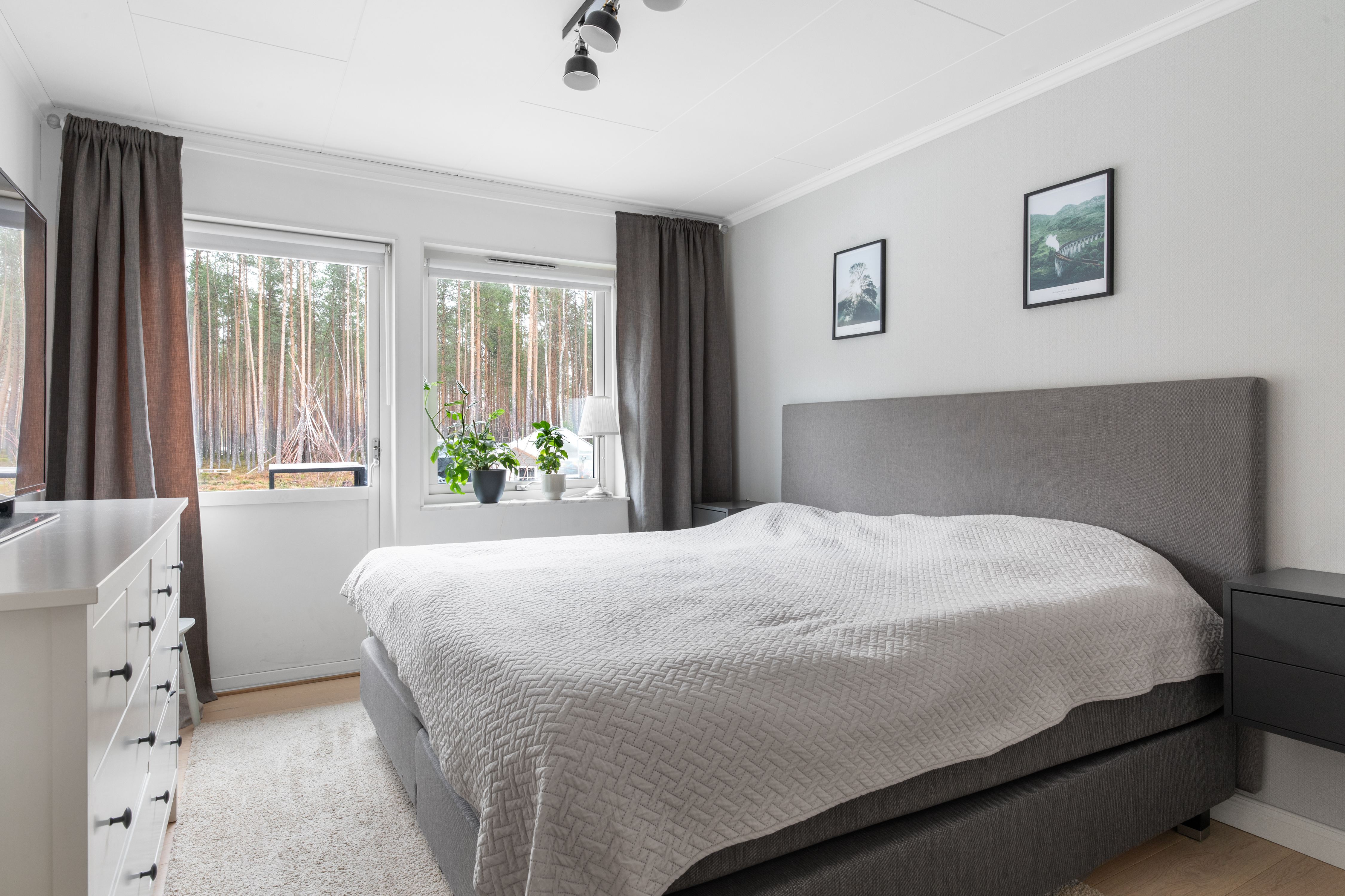 Som granne har du en vacker tallskog där du kan njuta av naturen och plocka bär, samtidigt som du bor med bekvämt avstånd till Kovlands centrum och idrottsanläggningar.