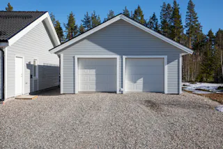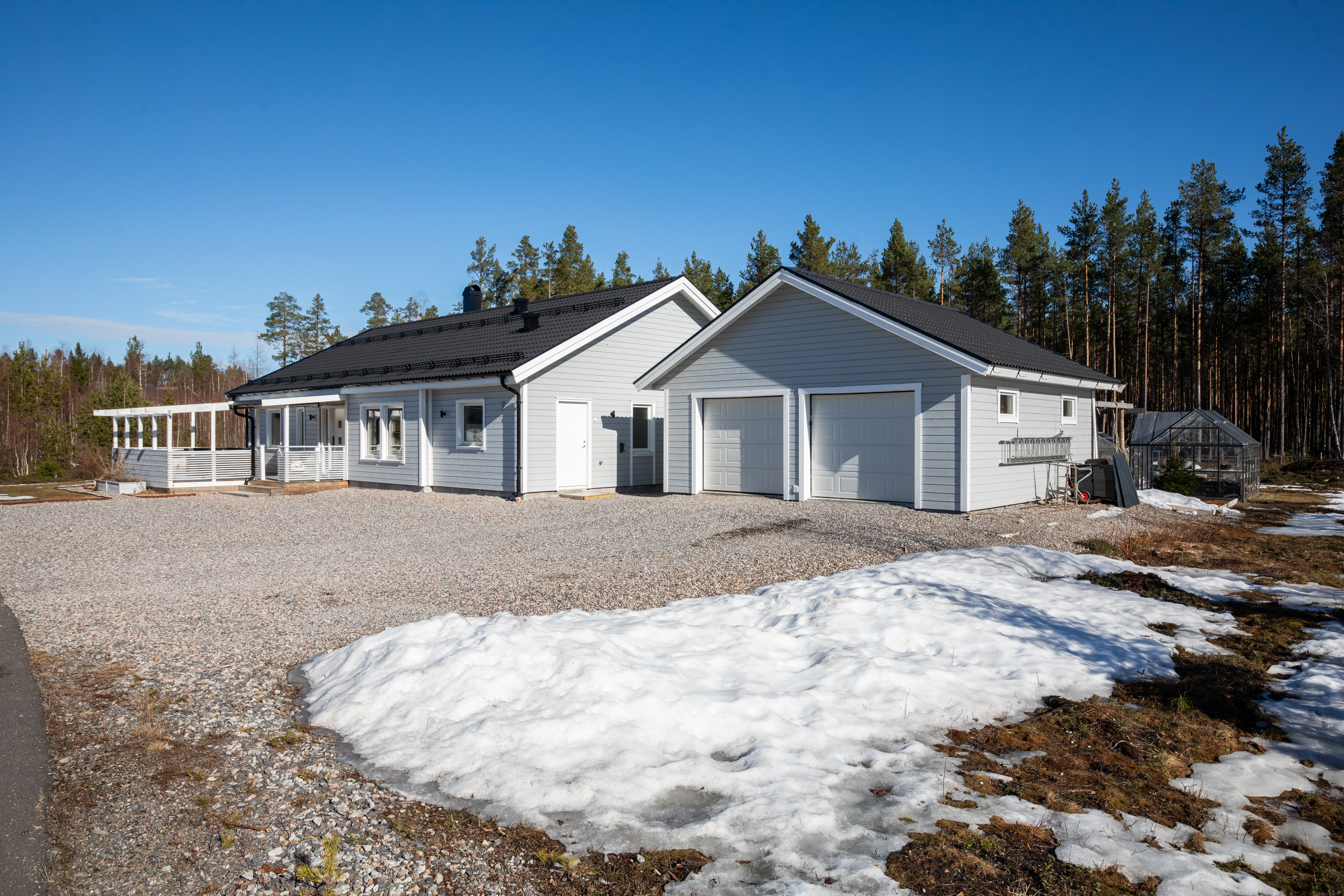 Till huset hör även ett praktiskt dubbelgarage som underlättar vardagen.