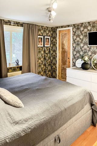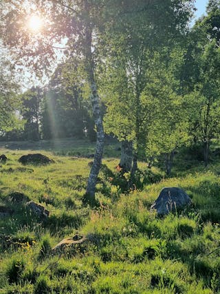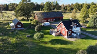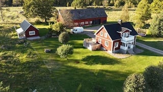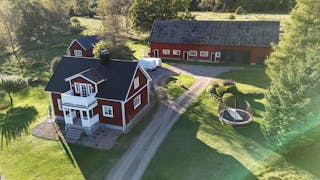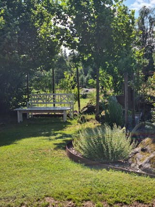 Gården erbjuder lantligt boende med möjligheter till skogsbruk, odling, mindre djurhållning etc.