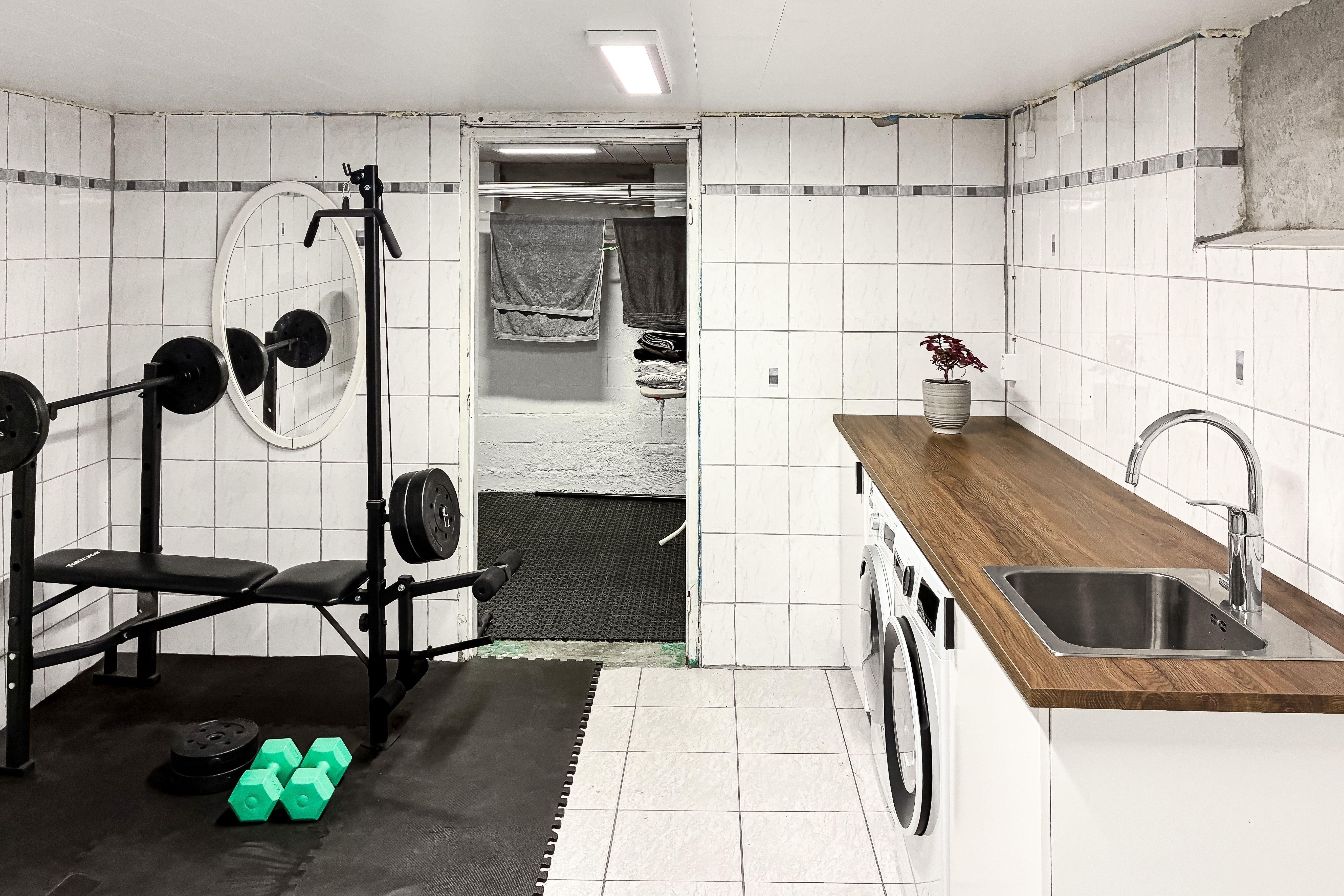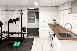 Källaren innehåller, pannrum, förvaringsutrymmen och tvättstugedel.