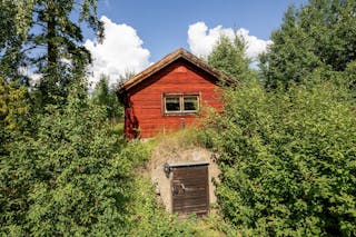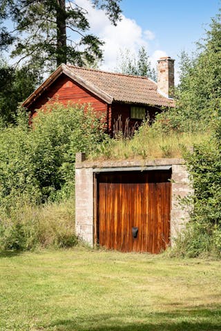 Det finns också en äldre timmerstuga där man verkligen kan känna historiens vingslag. Här kan du sitta vid brasan och smutta på ett glas gott som du hämtat från den rymliga jordkällaren ”en trappa ned”. Kanske vill du inreda den som din egen dryckeskällare eller som förvaring av dina odlade grödor, du bestämmer.