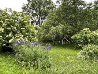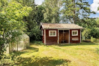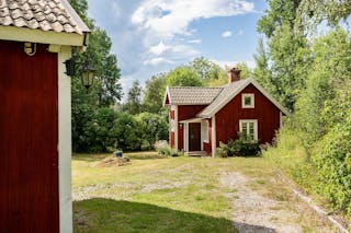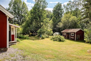 Med två hus på tomten finns alla möjligheter för övernattande gäster, ett generationsboende eller kanske ett eget boende för tonåringarna. Det ena huset är ett enplanshus med stort kök, ett sovrum, allrum samt tvättstuga, dusch och wc och det andra huset i 1 1/2 plan rymmer ett kök, ett allrum/rum och wc samt två små sovrum på övre plan.