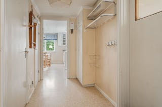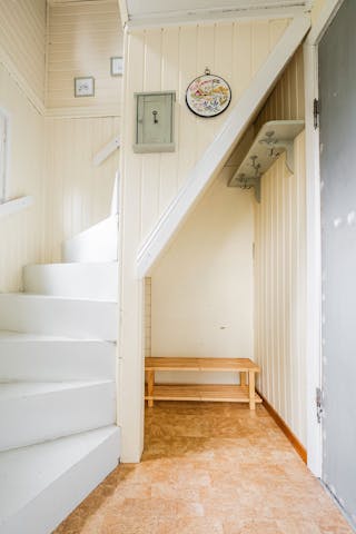 Du kliver in i en liten hall som antingen tar dig till övre plan eller in till köket.