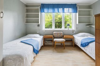 Sovrummet är ljust med två garderober.