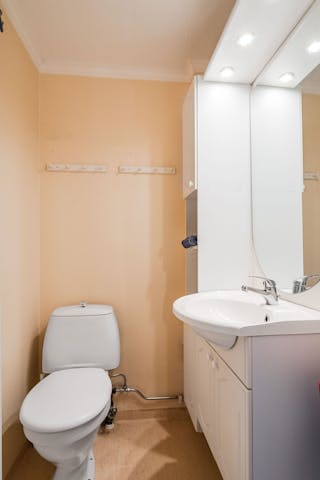I anslutning till hall finns en wc med handfat.