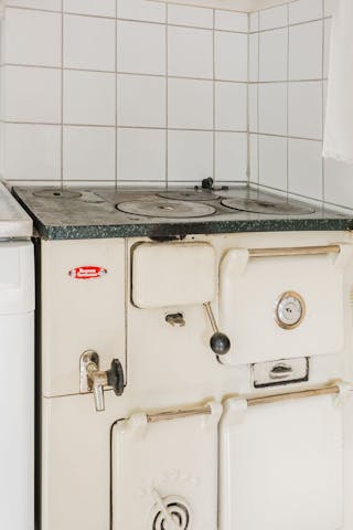 Här finns en vacker gammal vedeldad spis av märket Husqvarna Norrahammar, en riktig klenod.