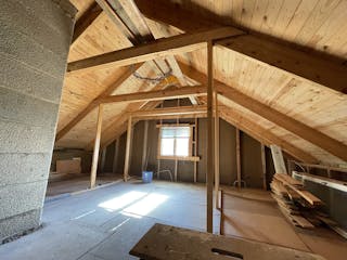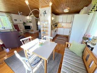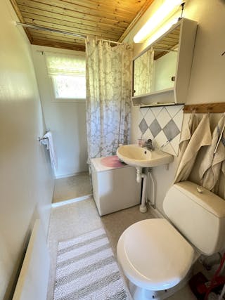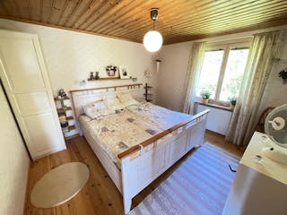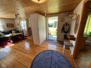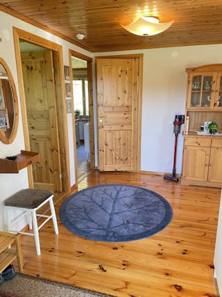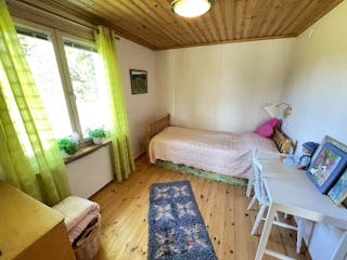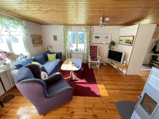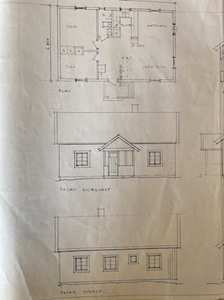 Säljaren har själv låtit bygga huset mellan 1989-2004 i 1 plan med kall vind och källarutrymme. Murad grund, träregelstomme, träfasad, yttertak av betongtegel, tvåglas fönster, uppvärmning via direktverkande el och braskamin -07, vatten från grävd brunn på egen mark, avlopp till trekammarbrunn med infiltrationsbädd. Tibrokök från -95 med lyckor, spis mm. Varmvattenberedare finns i källarutrymmet med höjd ca 1,30 m. Entréplan inrymmer en hall och allrum i ett, två sovrum, kök och matplats med utgång till gräsmattan eller möjlig altan. Lucka finns upp till vinden som idag är oinredd och ouppvärmd, men takhöjd finns för möjlig framtida boendeyta. Brandskyddsbesiktning (ok) och sotning skedd senast i september 2024. Överlåtelsebesiktning eller vattenanalys är ej utförda. Mer information i bilagd frågelista.