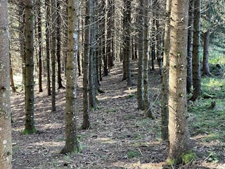 Skogsmarken uppdelad i två skiften. Skogsmarken på hemma skiftet domineras av granskog på goda boniteter. Utskiftet är mer talldominerat på magrare marker. Totalt virkesförråd ca 1350 m3sk varav ca 600 m3sk i avverkningsbara klasser. Skogsbruksplanen upprättad i februari 2018 av Skogsmästare Anders Skogsberg, ingen åtgärd utförd sedan dess, planen är uppräknad med tillväxt tom 2025-10-15.