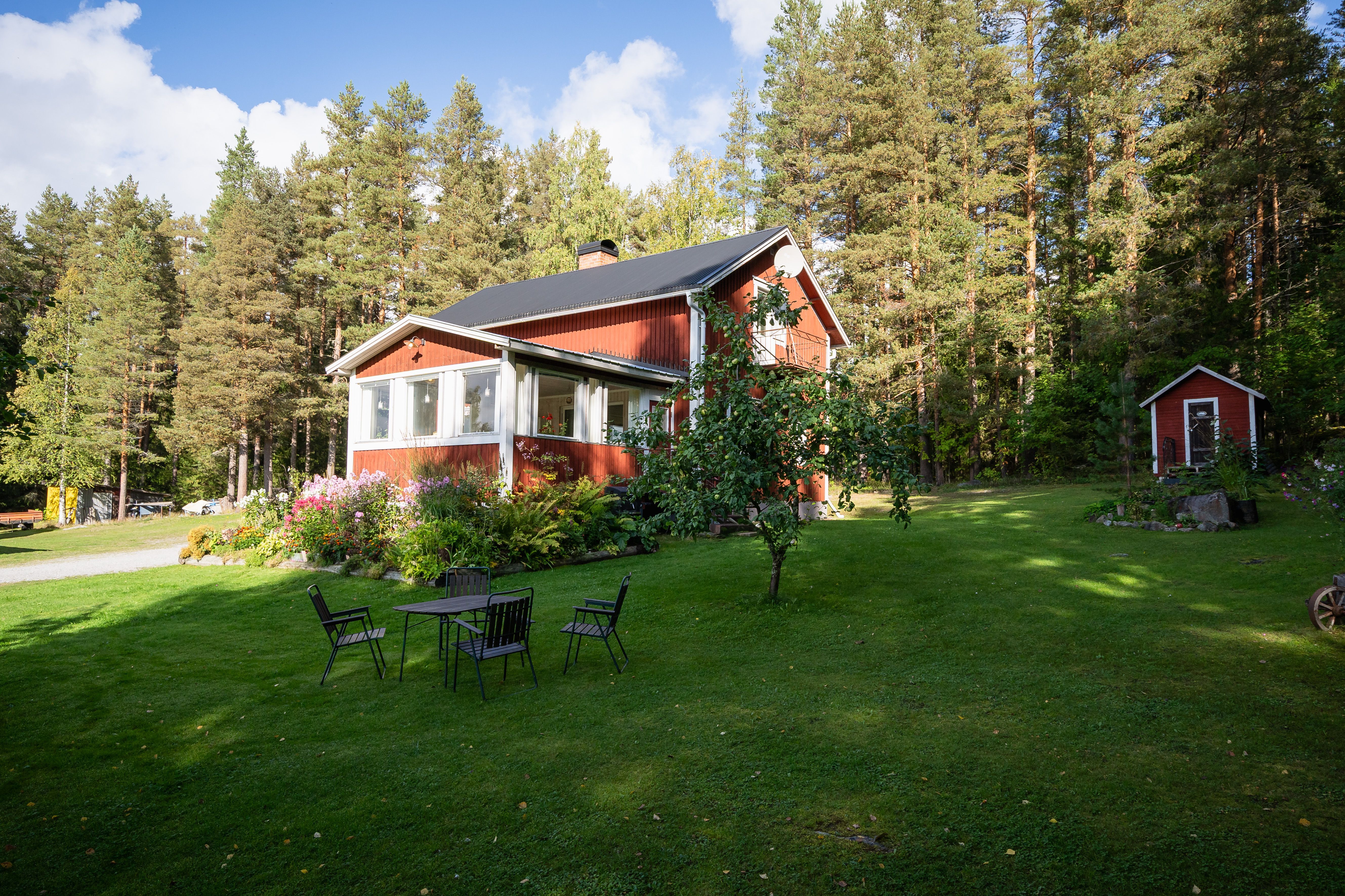Gårdshus med träfasad samt äldre vackra 2-glas fönster. Här finns kök, vardagsrum, sovrum samt wc så perfekt att nyttja för gäster, uthyrning eller hemmaboende barn.