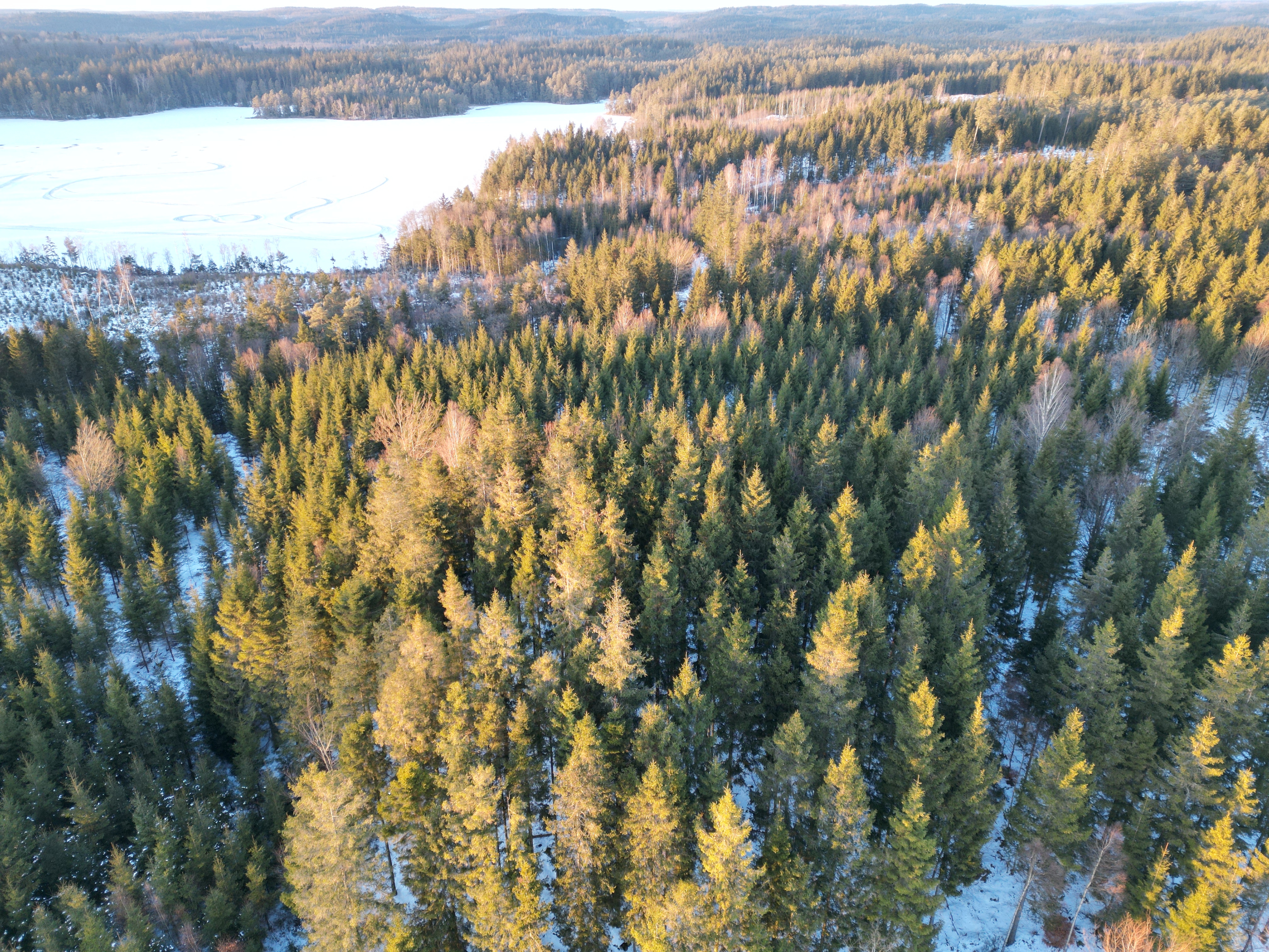 Areal enligt skogsbruksplan: 105,5 + 14 ha vatten