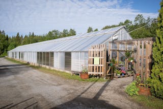 Stora växthuset är byggt 1980, detta rymliga växthus på ca 400 kvm har en robust betongsockel och golv som ger stabilitet och hållbarhet. Glastaket byttes ut 2022, vilket säkerställer maximalt ljusinsläpp, en perfekt miljö för dina växter samt låga underhållskostnader. Lilla växthuset är byggt 2007, detta växthus har en yta på ca 300 kvm och jordgolv som passar för olika odlingsprojekt. Taket i plastduk byttes 2019, vilket ger ett hållbart och väderbeständigt skydd för dina grödor för långtid framöver. Det finns även en byggnad på ca 100 kvm som idag används som gårdsbutik samt stora utomhusytor för exponering av försäljningsvaror.