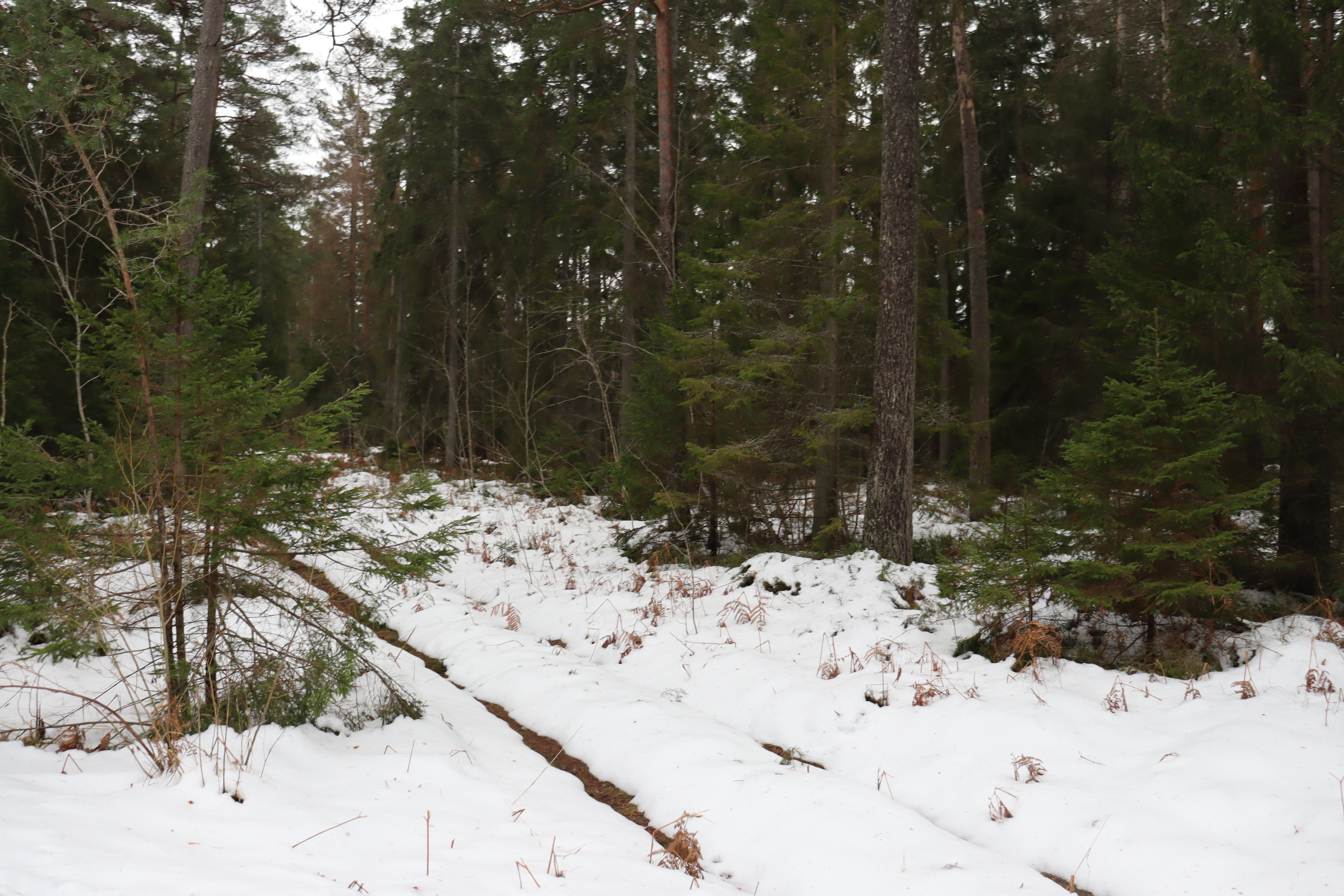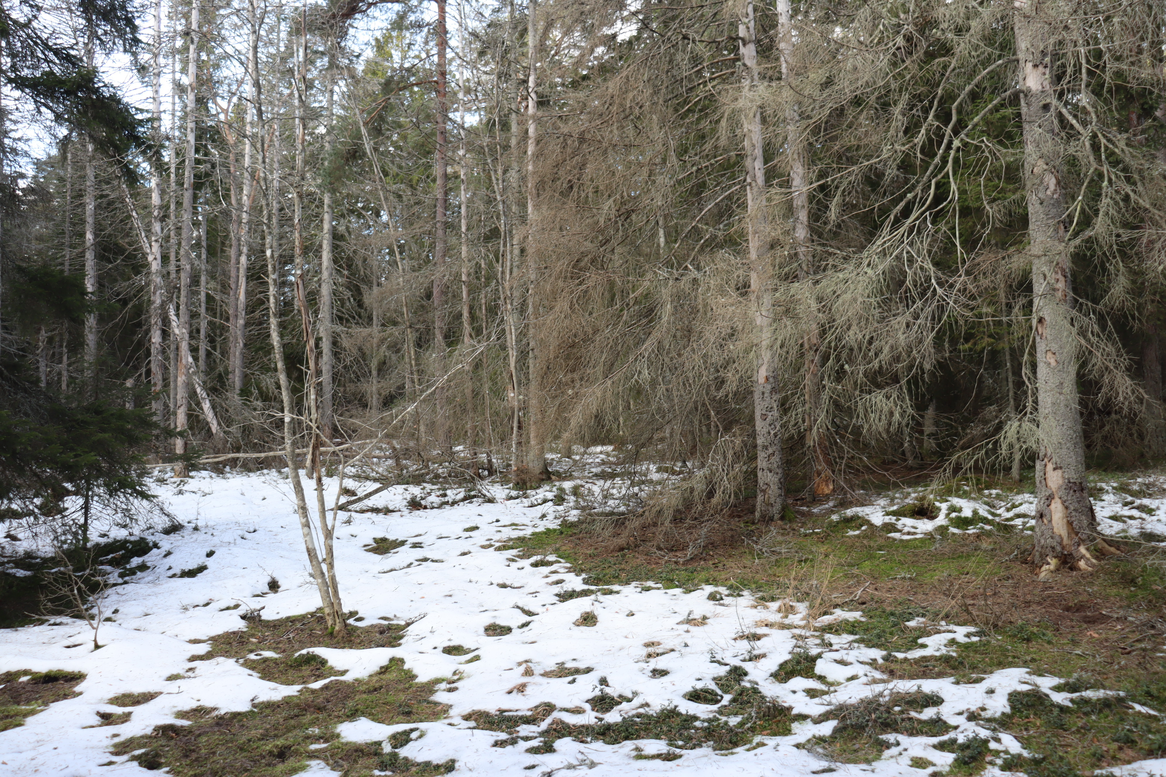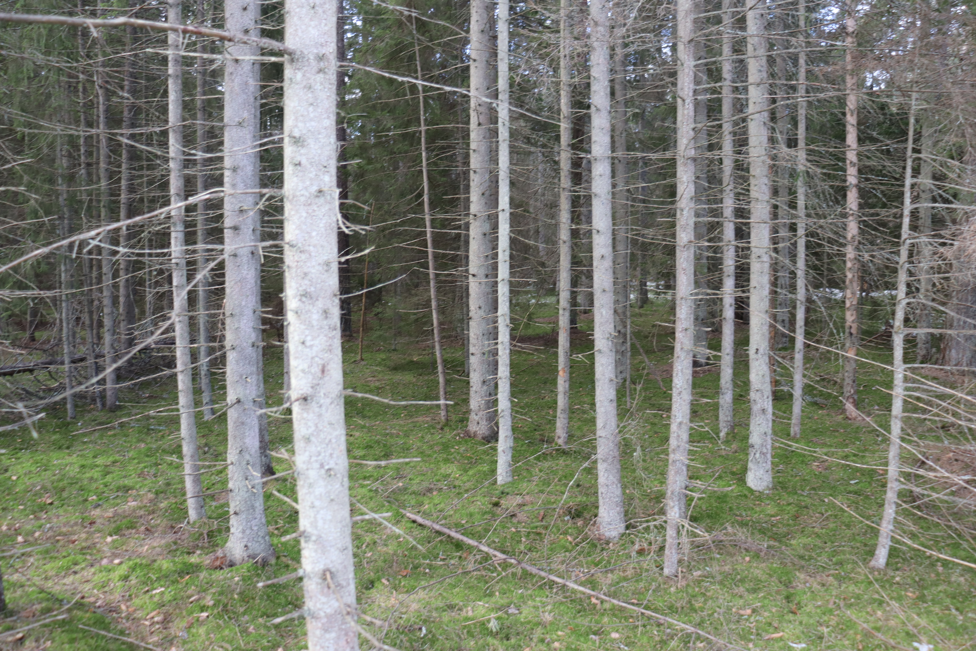 Som jämförelse till ovanstående uppgifter kan rapport från Skoghubben nämnas och utifrån laserdata bedöms virkesförrådet då till omkring 9 659 m³sk.