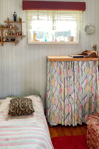 Sovrum med eldstad
