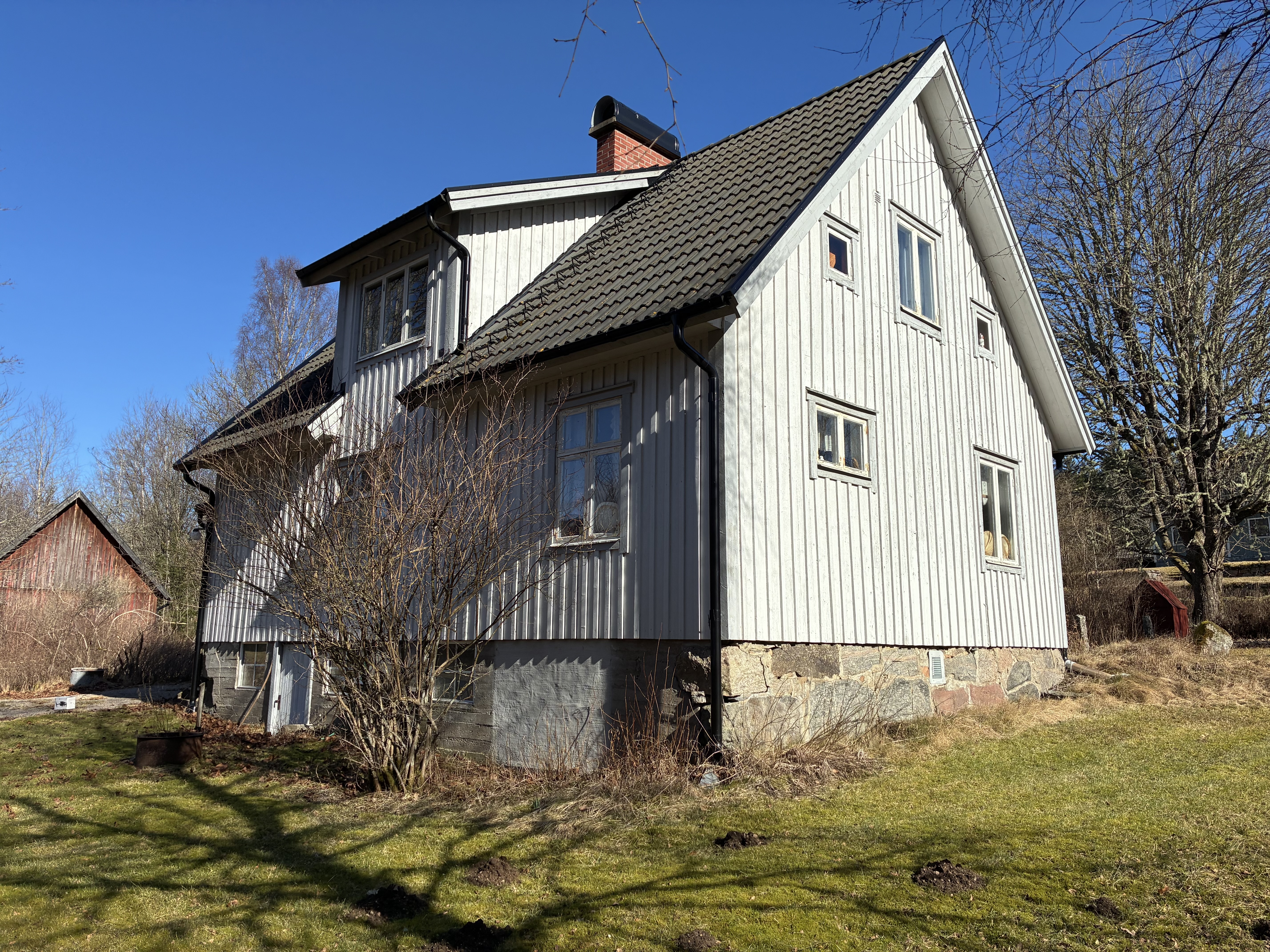 Fastigheten är bebyggd med bostads och ekonomibyggnader i behov av renovering och underhåll.