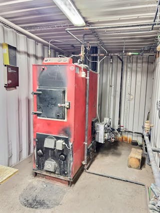 Öster om djurstallet finns en panncentral innehållande en kombipanna för flis på 90 kW med matning från en separat flisficka om ca. 6 m2 samt en panna för gårdens biogas. En kulvert går mellan biogasanläggningen och panncentralen. Anläggningen förser ladugården och personalutrymmen med värme och varmvatten.