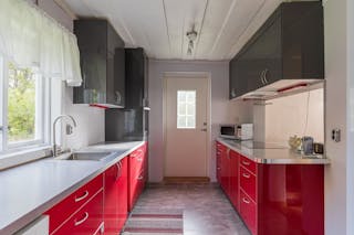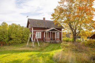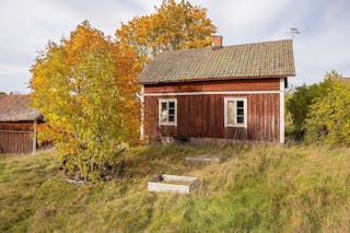 Röda stugan har funnits på fastigheten mycket länge. Det finns en fin potential att utveckla men är idag behov av renovering och det går inte att bo i byggnaden idag. Grunden är av natursten, stomme av stående timmer vars fasad är klädd med trä. Spröjsade englasfönster och på taket ligger tegelpannor.