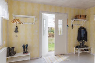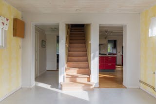 Rymlig, ljus hall med ljusinsläpp i tre riktningar.