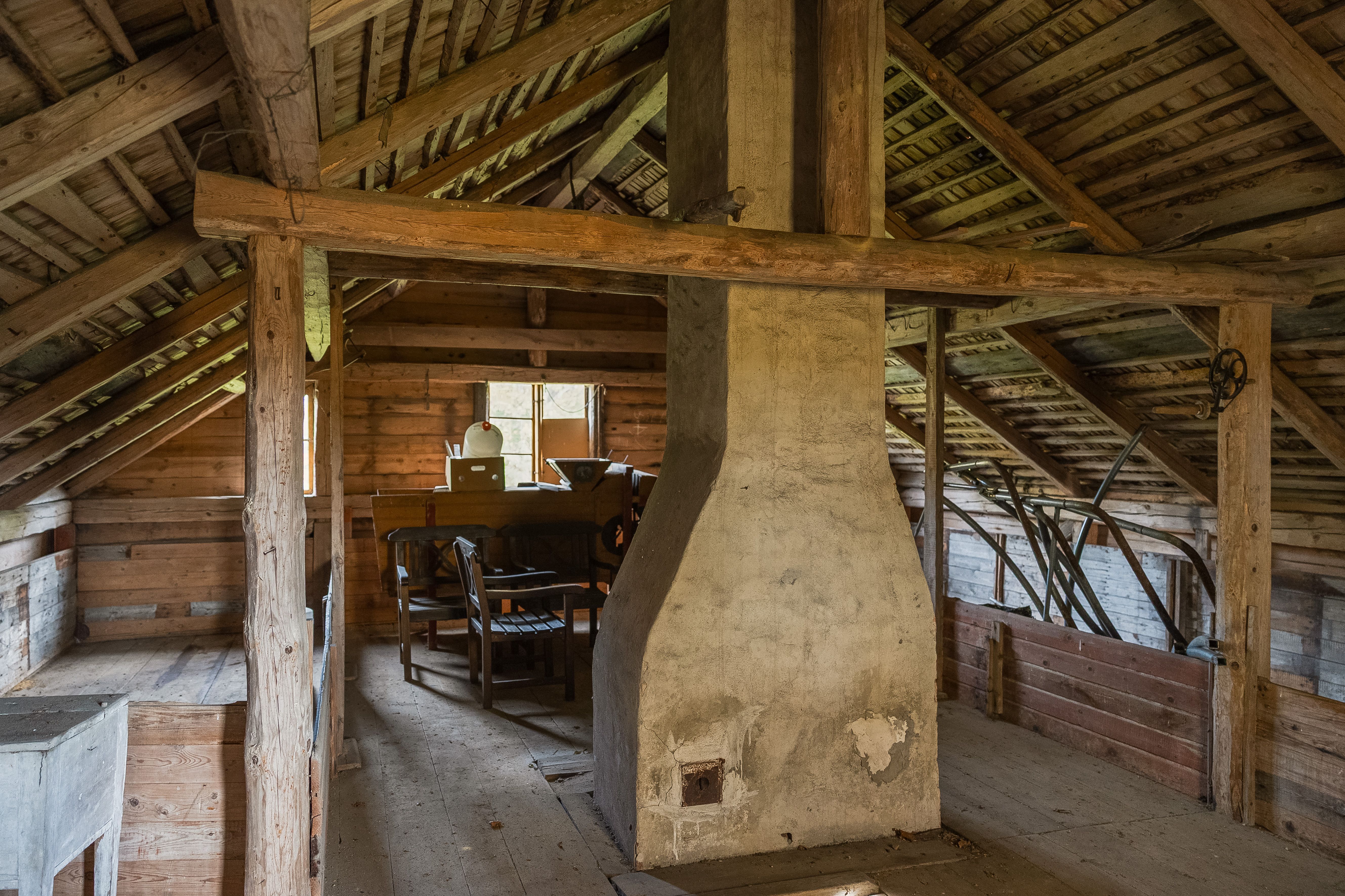 I ena delen av byggnaden ser man tydliga spår efter att man bott i bostaden. Det finns rejält gamla tapeter och en vacker eldstad (som inte fungerar idag). De båda rummen har rejält gammalt trägolv. Idag tjänstgör utrymmena som förrådsutrymmen.