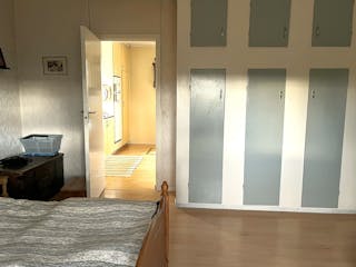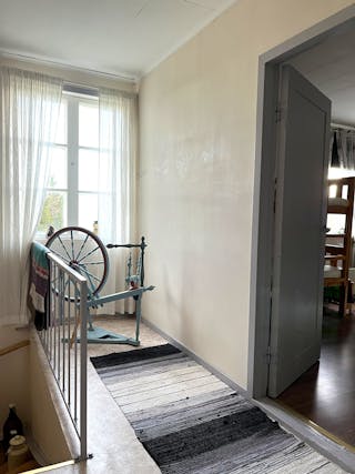 Övervåning med liten hall och tre sovrum. Ytskikt i gott bruksskick med målade väggar och laminatgolv.