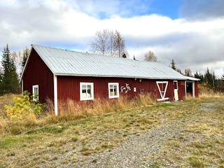 Äldre byggnad med förrådsdela Tidigare ladugårdsdel är idag inredd som enkel snickeri-/verkstadsdel.