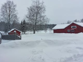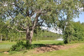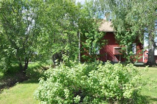 Den rymliga tomten är ett extra plus där du sommartid kan odla grönsaker, blommor och efter en dags trädgårdsarbete ta välförtjänt fikapaus bestående av rabarberpaj och kaffe vid uteplatsen eller vila i en solstol och låta dig förföras av älvens kluckande ljud.