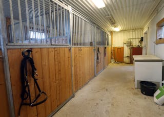 Byggnaden inrymmer isolerad sadelkammare, verkstad/snickarbod samt flertalet förrådsutrymmen varav den ena tidigare använts som personalutrymme, där det finns mulltoa och dusch.