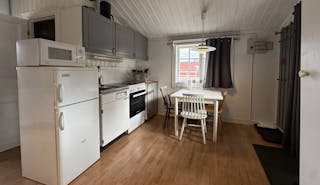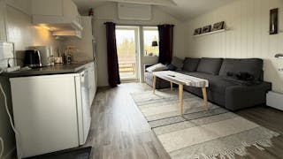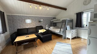 Öppen planlösning med allrum/sovrum samt köksdel.