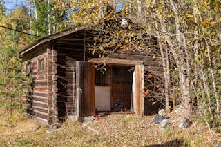 Äldre stall/box i timmerbyggnad.