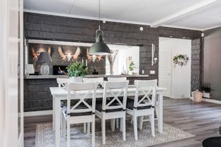 Bostadshuset är genomgående renoverat och har dessutom byggts ut, vilket skapar en modern och trivsam boendemiljö med gott om utrymme för hela familjen. Här möts du av en harmonisk blandning av lantlig charm och moderna bekvämligheter.