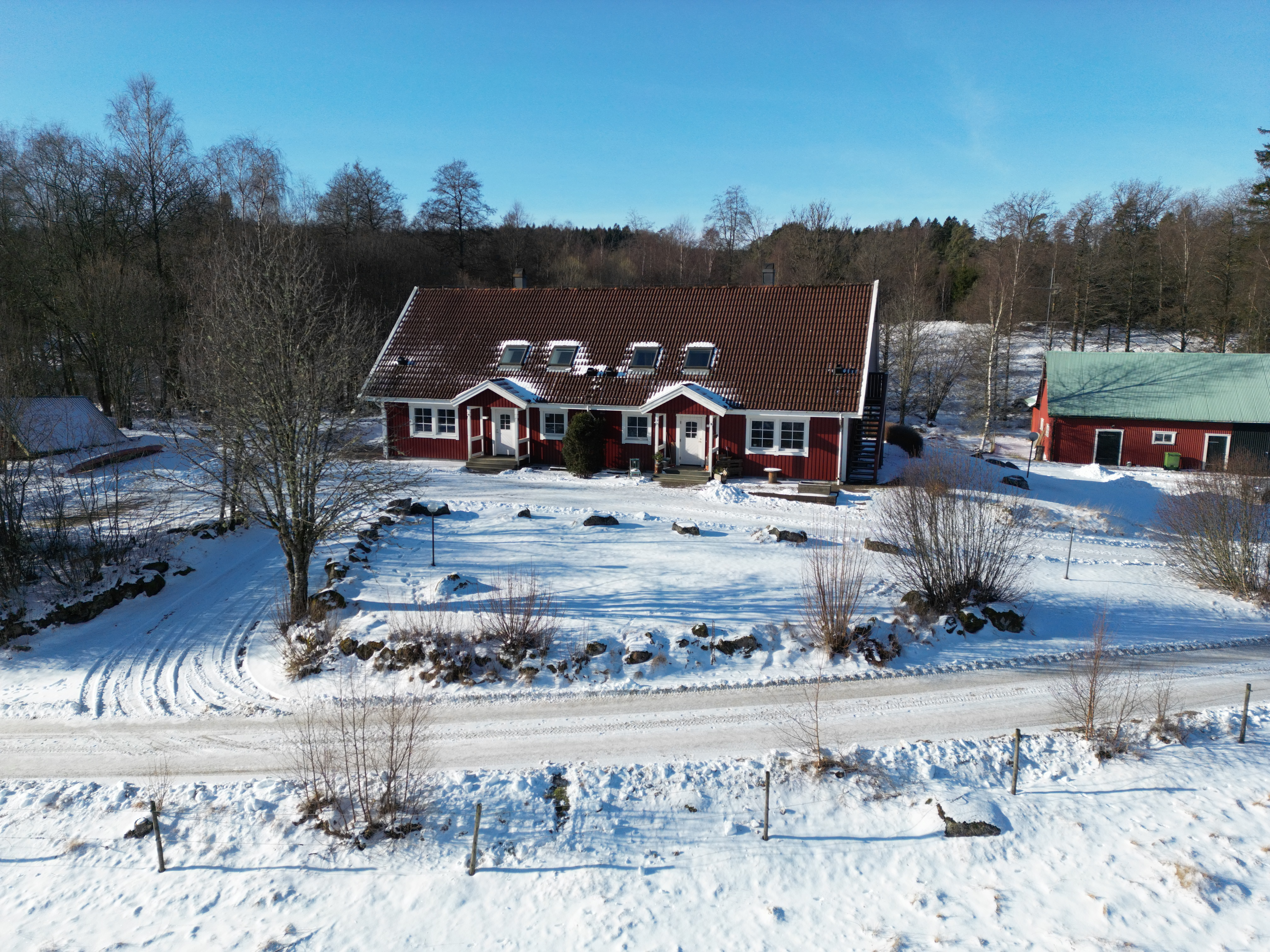 Bostadshuset, som uppfördes 1991, erbjuder en bekväm standard med rymliga ytor och ett bra ljusinsläpp. Här finns två lägenheter med genomtänkta planlösningar, bra sällskapsytor och goda förvaringsmöjligheter. Byggnaden har löpande underhållits och ger ett välskött intryck, samtidigt som den erbjuder goda möjligheter både för eget boende och uthyrning. Bostadshuset och de två lägenheterna har ett gemensamt avloppssystem bestående av en trekammarbrunn med tillhörande infiltration. Vattenförsörjningen sker från en egen djupborrad brunn på cirka 120 meter som är utrustad med kalkfilter. I båda lägenheterna finns braskaminer installerade, vilka är godkända för användning.