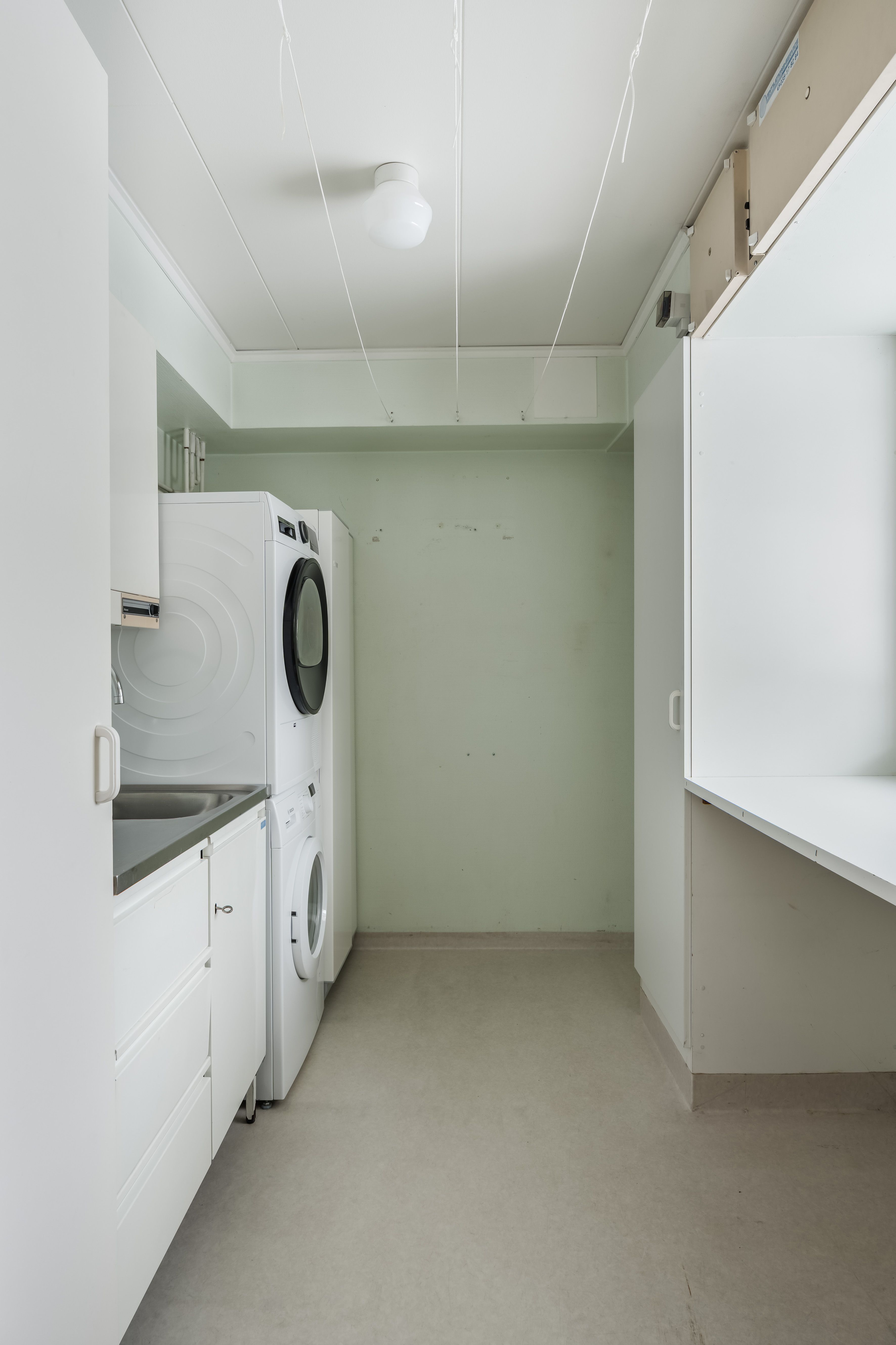 ett gjutet golv. Det sista utrymmet har ett jordgolv och används som förvaringsutrymme.